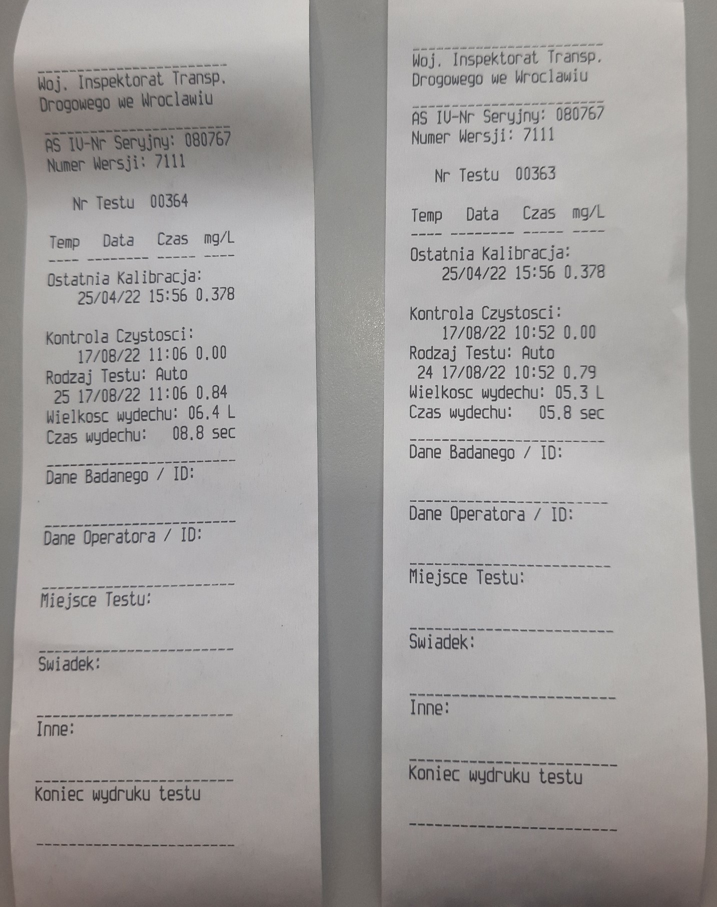 W środę (17 sierpnia) koło południa, na drodze powiatowej nr 297 w pobliżu Bolesławca, inspektorzy ITD zatrzymali do rutynowej kontroli ciężarówkę należącą do estońskiego przewoźnika. Zestawem był wykonywany międzynarodowy przewóz drogowy. Gdy inspektorzy pobierali dokumenty, poczuli woń alkoholu od kierującego. Wykonane badanie alkomatem przesiewowym wykazało obecność alkoholu w powietrzu wydychanym przez obywatela Estonii. Trzeźwość kierowcy sprawdzono alkosensorem. Za pierwszym razem urządzenie to wykazało 0,79 mg/l (blisko 1,66 promila) alkoholu, a za drugim razem 0,84 mg/l (ponad 1,76 promila) alkoholu w wydychanym przez kierujacego powietrzu. Pomimo utrzymującej się tendencji wzrostowej zawartości alkoholu, mężczyzna twierdził w rozmowie z inspektorami, że w niedzielę wypił dwa piwa, a w dniu kontroli pił tylko kwas chlebowy. Nietrzeźwy kierowca został przekazany do dalszych czynności funkcjonariuszom z Komendy Powiatowej Policji w Bolesławcu.