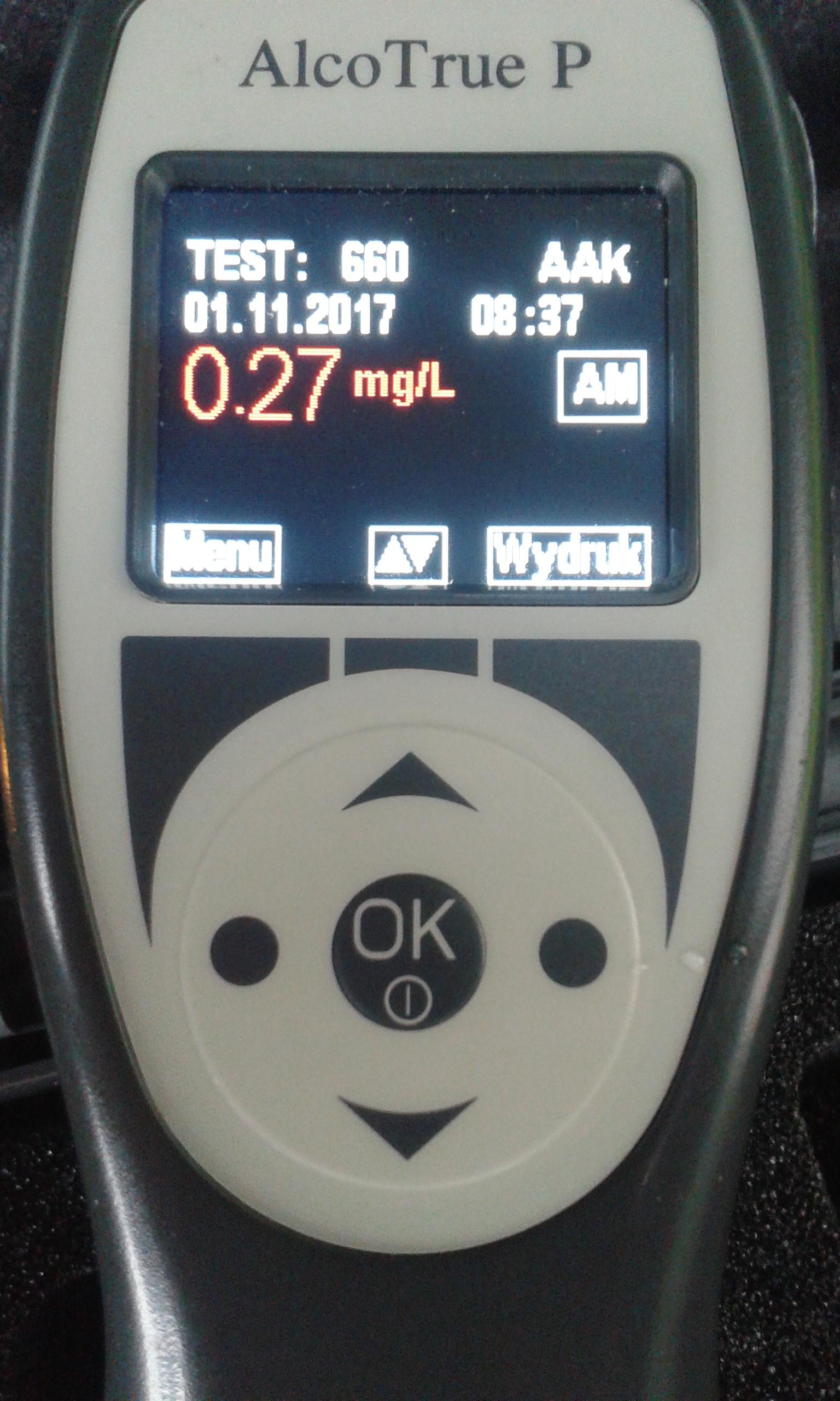Kontrola trzeźwości 45-letniego kierującego, mieszkańca podtoruńskiego Lubicza, wykazała 0,27mg/l (0,56 promila) alkoholu w wydychanym powietrzu. W związku z ujawnieniem przestępstwa z art. 178a Kodeksu karnego inspektorzy ITD zgłosili ten fakt oficerowi dyżurnemu Komendy Miejskiej Policji w Toruniu.