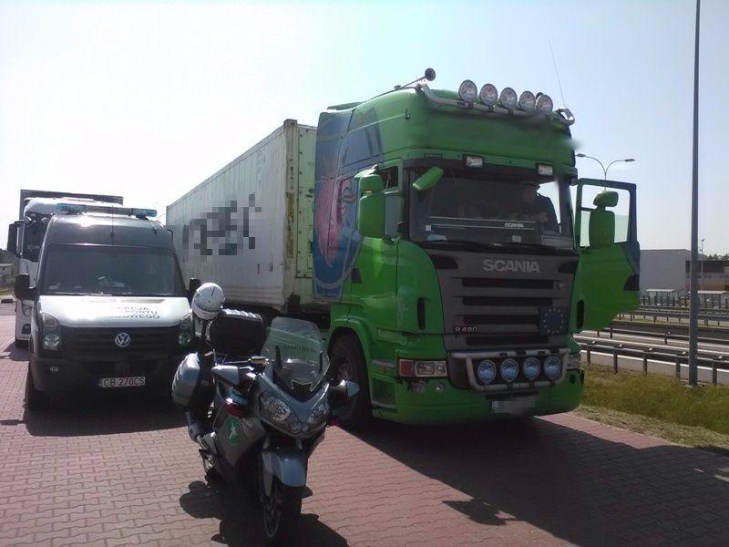 Zachowanie szofera pojazdu należącego do polskiego przewoźnika mogło skutkować tylko jednym - zatrzymaniem do kontroli drogowej przez inspektora poruszającego się na motocyklu. Ciężarówka została skierowana w bezpieczne miejsce, gdzie kontrolujący mogli przeprowadzić wszystkie czynności.