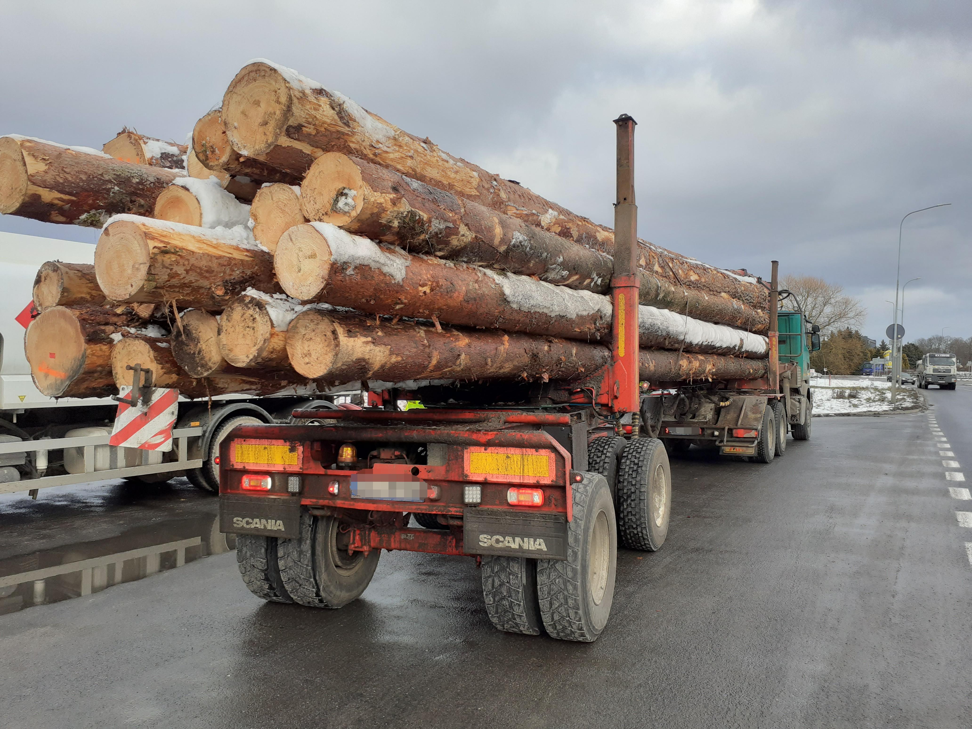 Kierowcy dwóch ciężarówek, skontrolowanych przez inspektorów Inspekcji Transportu Drogowego ze Szczecina, przewożących drewno niewłaściwie zabezpieczyli ładunek. Upadek kłody na drogę w trakcie jazdy byłby katastrofalny w skutkach.