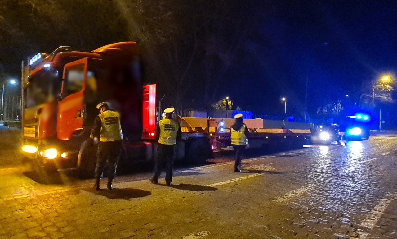 W środę (9 marca) w nocy, na jednej z ulic Szczecina, patrol ITD zatrzymał do kontroli drogowej zestaw z ładunkiem znacznie przekraczający dopuszczalną normę szerokości. Krajowy przewoźnik wykonywał transport stalowego elementu dźwigu. Ciężarówka z ładunkiem miała 4,41 m szerokości zamiast przepisowych 2,55 m szerokości. Zestaw był za szeroki o 1,86 m. W tym przypadku kierowca powinien okazać zezwolenie kat. V na przejazd nienormatywnego pojazdu po drogach publicznych. Szofer nie miał takiego dokumentu, więc nie mógł dalej wykonywać przewozu. Inspektorzy skierowali ciężarówkę na wyznaczony parking strzeżony na terenie Szczecina. Będzie mogła odjechać z niego po przedstawieniu wymaganego zezwolenia. Za wykonywanie transportu nienormatywnego niezgodnie z obowiązującymi przepisami odpowie przewoźnik. Wobec niego wszczęto postępowania administracyjne z ustawy prawo o ruchu drogowym oraz ustawy o transporcie drogowym. Przedsiębiorcy grozi kara pieniężna.