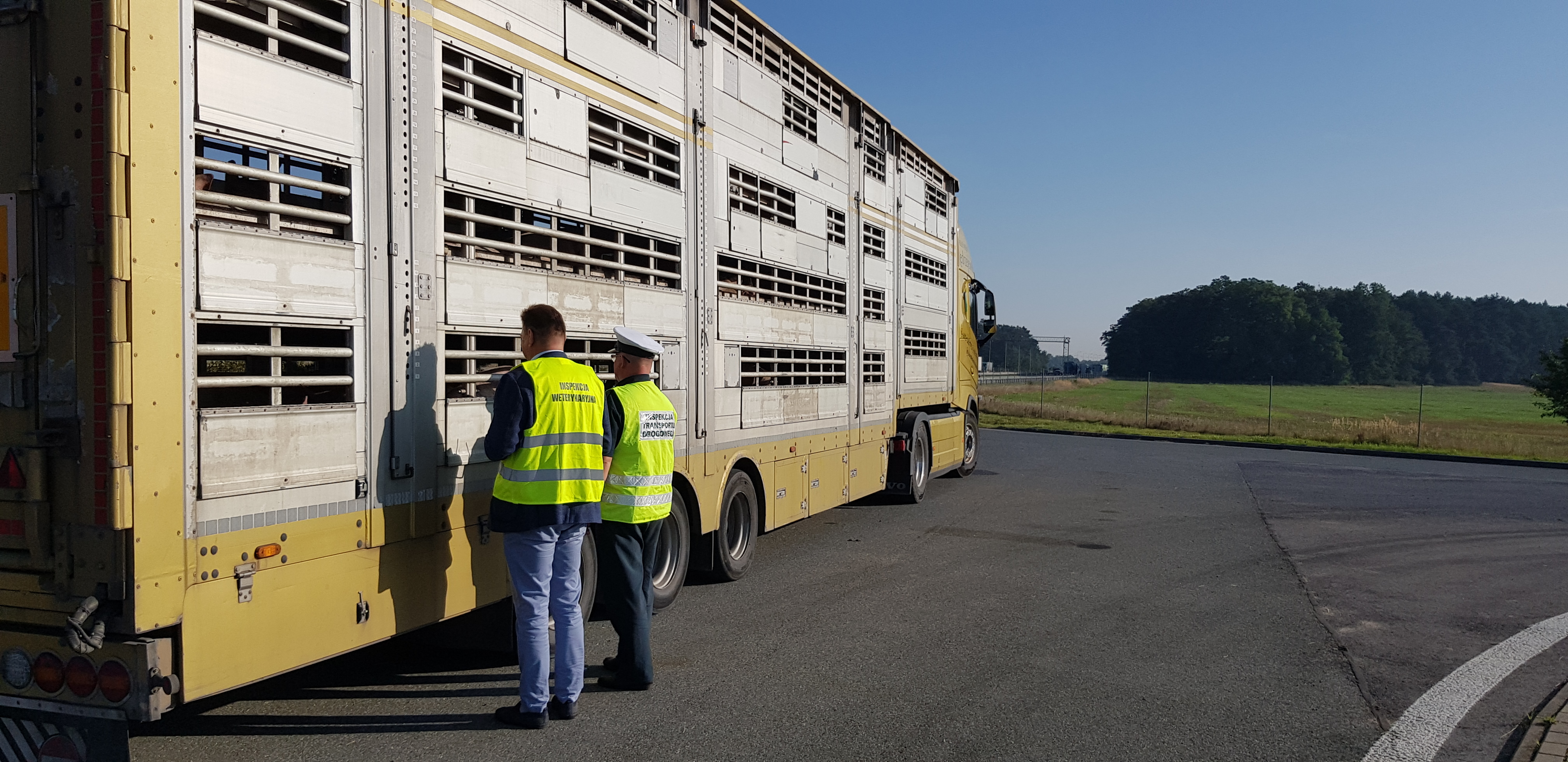 Inspektorzy transportu drogowego zatrzymali też polski ciągnik siodłowy z podpiętą naczepą. Zestawem przewożono żywe świnie z pobliskiego gospodarstwa. Zwierząt załadowano za dużo, bo ciężarówka ważyła 43,2 t zamiast dopuszczalnych 40 t. O prawie 1 t przekroczony był także nacisk grupy osi naczepy na drogę. W trakcie kontroli, inspektorzy poczuli też woń alkoholu od kierowcy. Badanie trzeźwości wykazało 0,25 promila alkoholu w powietrzu wydychanym przez mężczyznę. Kierowca został przekazany do dalszych czynności funkcjonariuszom Komendy Miejskiej Policji w Piotrkowie Trybunalskim. Przybyły na miejsce kontroli lekarz Inspekcji Weterynaryjnej zakazał transportu świń do miejsca docelowego. Zwierzęta wróciły do hodowcy w celu zapewnienia im odpoczynku. Za stwierdzone przekroczenia parametrów wagowych wobec przewoźnika zostanie wszczęte postępowanie administracyjne zagrożone karą pieniężną.