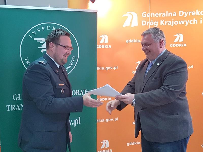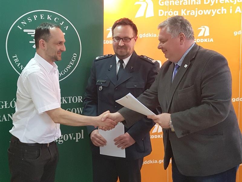 Symboliczne przekazanie 108 kompletów wag mobilnych odbyło się w czwartek, 12 kwietnia 2018 r. w siedzibie bydgoskiego oddziału Generalnej Dyrekcji Dróg Krajowych i Autostrad. W spotkaniu uczestniczyli: Dyrektor Biura Nadzoru Inspekcyjnego Głównego Inspektoratu Transportu Drogowego Hubert Jednorowski, Kujawsko-Pomorski Wojewódzki Inspektor Transportu Drogowego Rafał Rewoliński, Dyrektor Oddziału GDDKiA Jarosław Gołębiewski oraz przedstawiciel dostawcy urządzeń - Prezes Zarządu CAT TRAFFIC Sp. z o.o. z Poznania Łukasz Kurkowski.