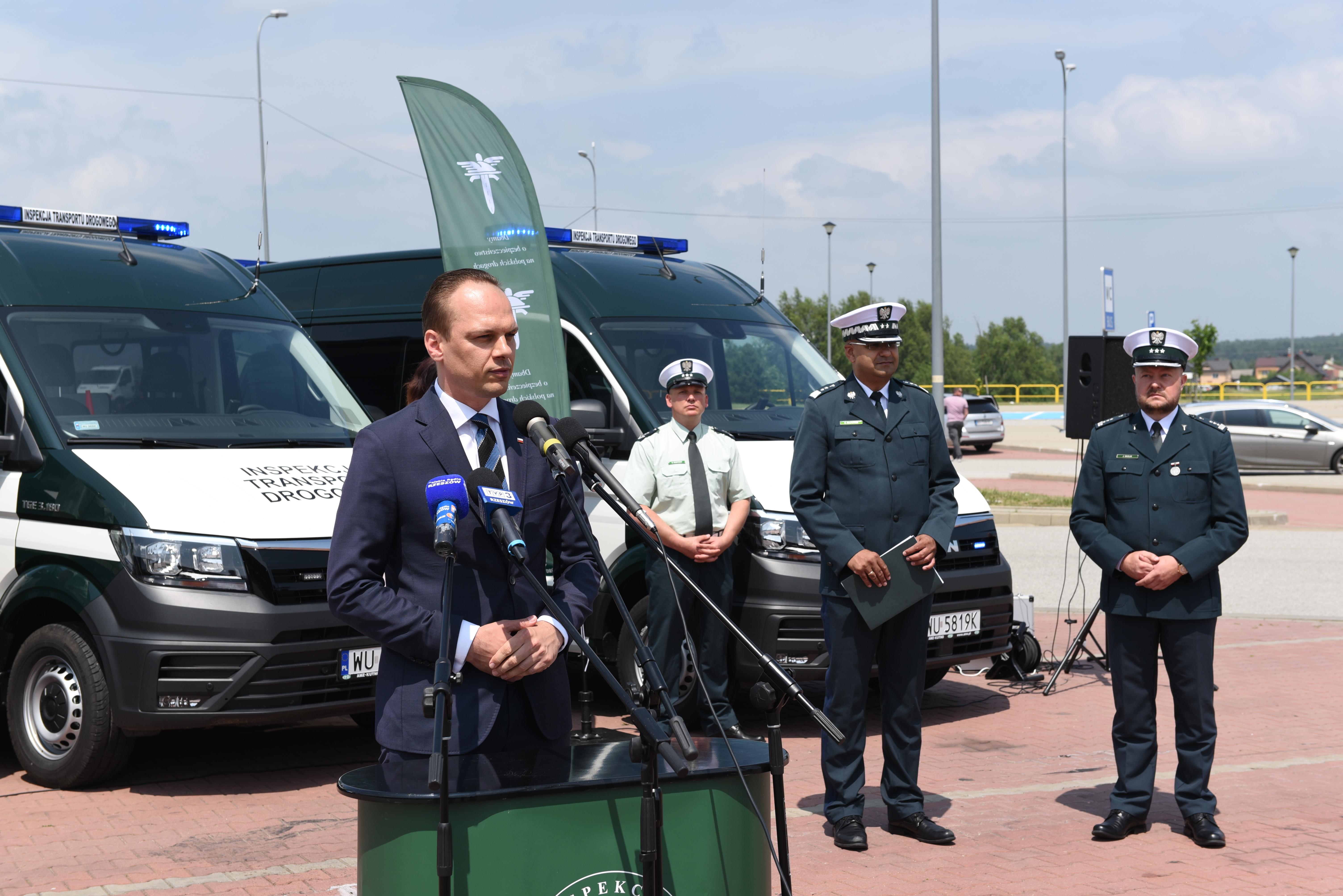 Ze względu na bliskość Słowacji i Ukrainy oraz ruch tranzytowy, nowe radiowozy oraz sprzęt kontrolny będziemy wykorzystywać m.in. w trakcie kontroli międzynarodowych przewozów drogowych. Pomogą nam chronić polski rynek transportowy. Rocznie kontrolujemy ok. 13 tys. pojazdów, ponad połowa z nich to pojazdy zagranicznych przewoźników. Najczęściej ujawniamy przypadki niestosowania się do norm czasu pracy, ingerencji w tachografy i stosowania niedozwolonych urządzeń oraz wykonywania międzynarodowych przewozów drogowych bez wymaganych zezwoleń - mówił Jarosław Skolik, Podkarpacki Wojewódzki Inspektor Transportu Drogowego.