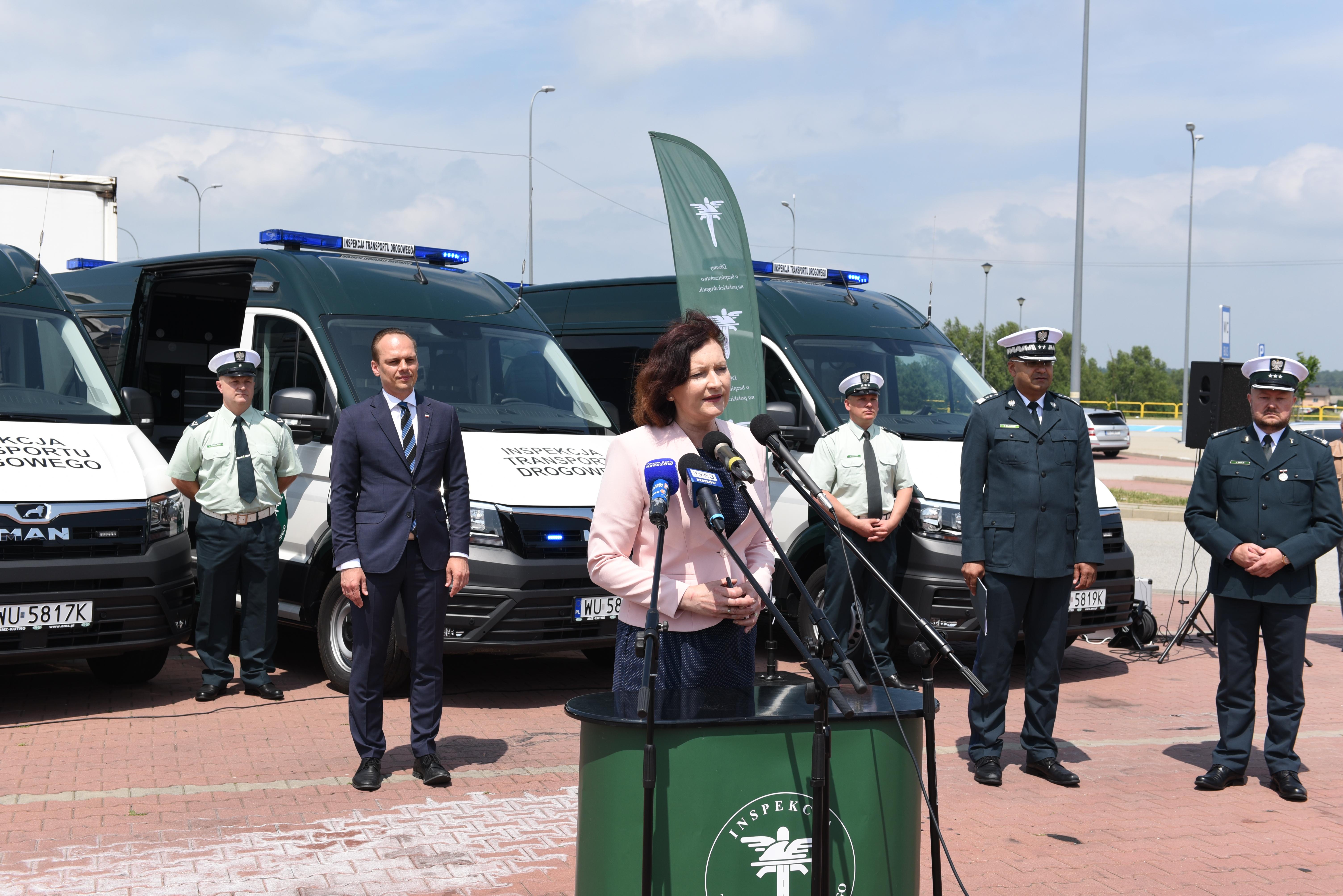 Cztery nowoczesne furgony wyposażone w specjalistyczny sprzęt kontrolny trafiły do podkarpackiej Inspekcji Transportu Drogowego. Warte 1,7 mln zł radiowozy zostały zaprezentowane w trakcie briefingu z udziałem Rafała Webera sekretarza stanu w Ministerstwie Infrastruktury, Alvina Gajadhura Głównego Inspektora Transportu Drogowego oraz Ewy Leniart Wojewody Podkarpackiego.