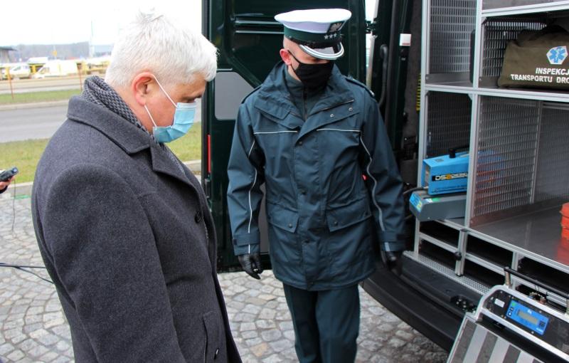 Podlaski Wojewódzki Inspektor Transportu Drogowego Tomasz Wyszkowski odebrał kluczyki od nowego radiowozu z rąk Wojewody Podlaskiego Bohdana Paszkowskiego w czwartek (3 grudnia). W latach 2018 i 2019 flota pojazdów podlaskiej ITD wzbogaciła się o trzy nowe samochody, które zostały zakupione z budżetu Wojewody Podlaskiego. W tym roku podlascy inspektorzy otrzymali również cztery furgony ze specjalistycznym wyposażeniem kontrolnym od Głównego Inspektoratu Transportu Drogowego. Samochody zakupione zostały przez GITD w ramach realizacji projektu "Wzmocnienie potencjału Inspekcji Transportu Drogowego", który jest współfinansowany ze środków Unii Europejskiej w ramach Programu Operacyjnego Infrastruktura i Środowisko 2014-2020.