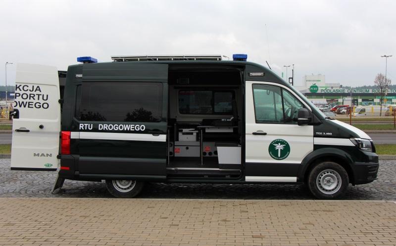 Nowy MAN zastąpi najbardziej wysłużony pojazd podlaskiej ITD. Samochód jest wyposażony m.in. w tester diagnostyczny EOBD do oceny sprawności układu hamulcowego czy systemu oczyszczania spalin (SCR). W aucie znajdują się także przenośne wagi do kontroli masy całkowitej i nacisków osi pojazdów. Ponadto nowy radiowóz jest wyposażony w dymomierz, który służy do kontroli poziomu zadymienia spalin pojazdów. Oznakowany furgon wyróżnia się od pozostałych pojazdów służbowych ITD zamontowanymi na dachu panelami słonecznymi. Pozyskiwana z promieni słonecznych i gromadzona w akumulatorach energia będzie wykorzystywana m.in. do zasilania urządzeń w przestrzeni biurowej samochodu. Radiowóz wyposażony jest również w sprzęt do zabezpieczania miejsc wypadku drogowego oraz artykuły niezbędne do udzielania pierwszej pomocy.
