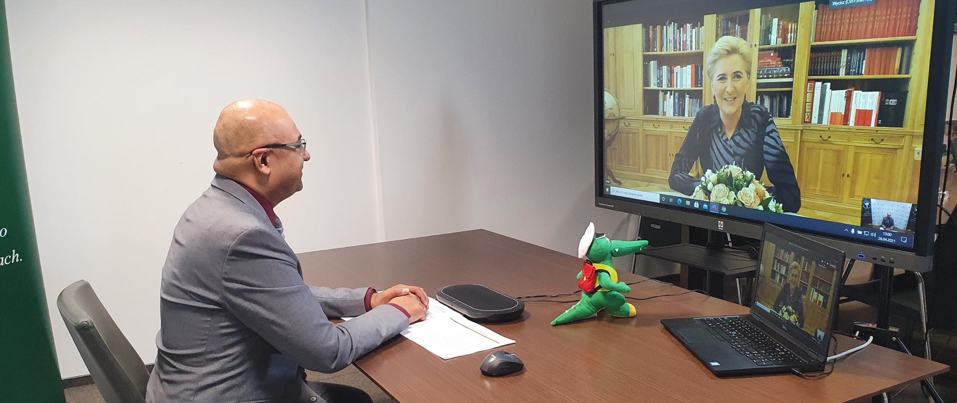Stan bezpieczeństwa na drogach, nowe inicjatywy brd, rozwój projektu edukacyjnego „Bezpieczna Szkoła Krokodylka Tirka online” – o tym rozmawiali w trakcie dzisiejszej wideokonferencji Pierwsza Dama Agata Kornhauser-Duda i Główny Inspektor Transportu Drogowego Alvin Gajadhur.