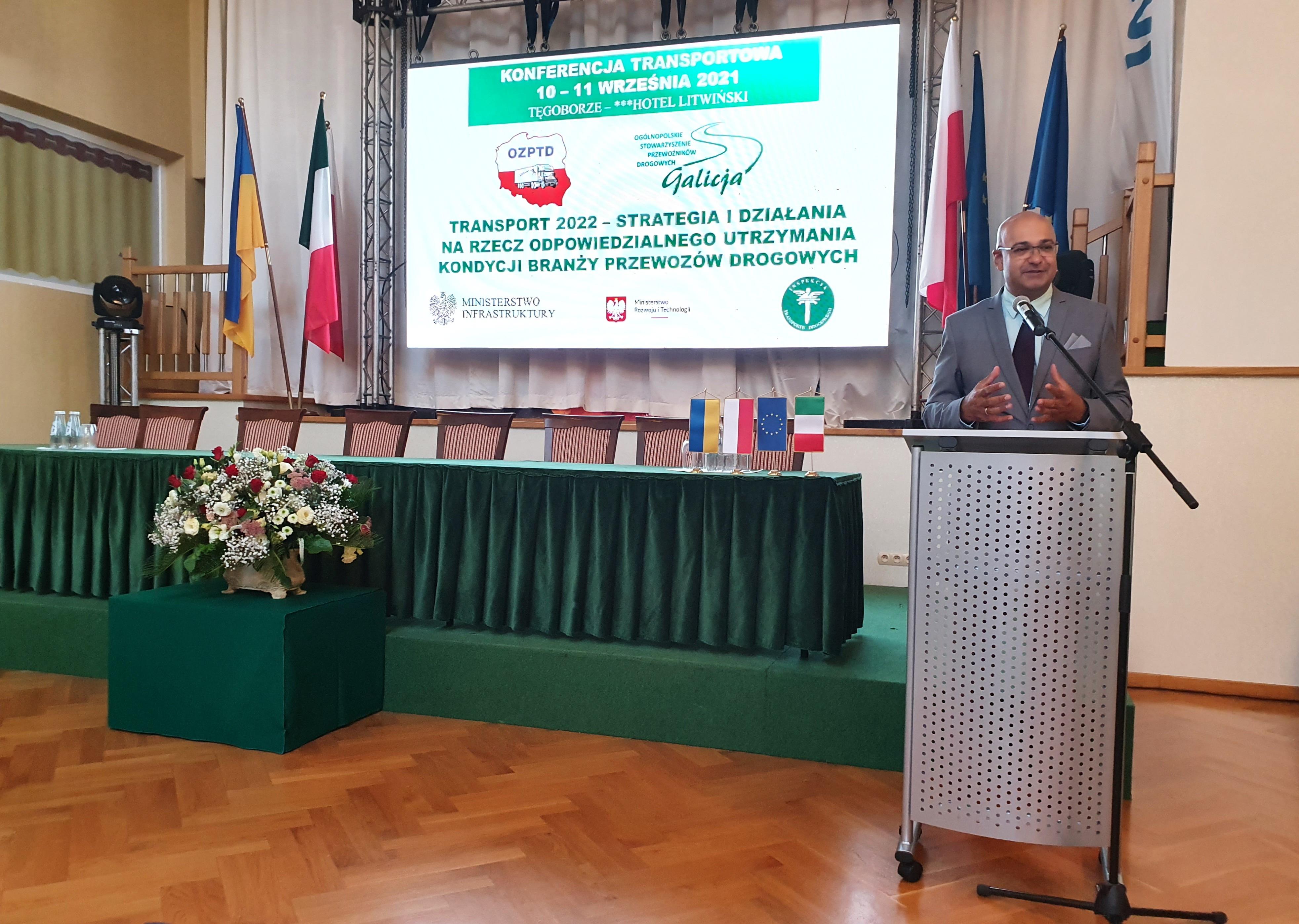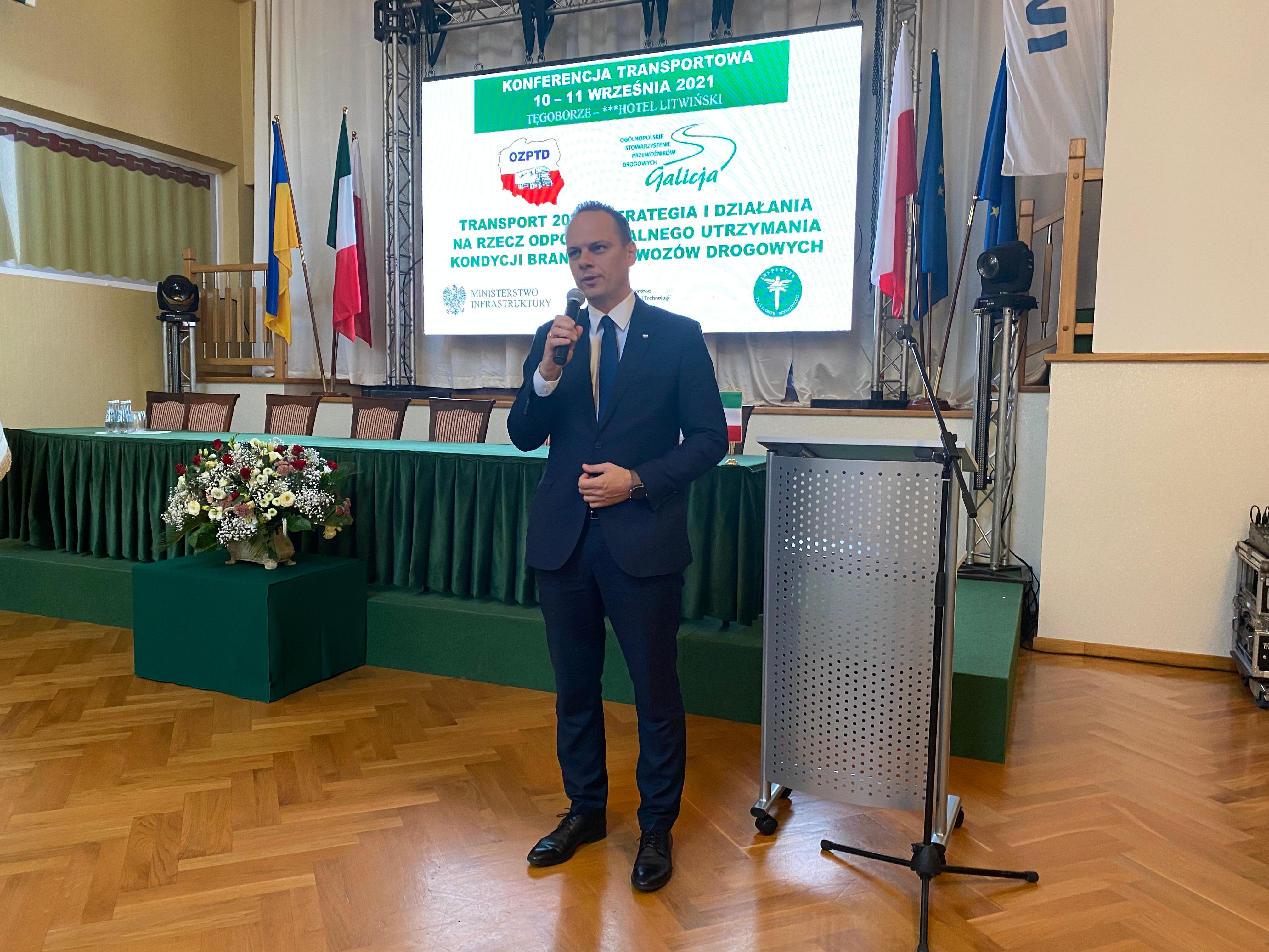 Tematem przewodnim tegorocznej konferencji przewoźników była "strategia i działania na rzecz odpowiedzialnego utrzymania kondycji branży przewozów drogowych". Wiceminister Infrastruktury Rafał Weber ocenił, że udział polskiej branży transportowej w operacjach realizowanych szczególnie na rynku europejskim, mimo trwającej pandemii Covid -19, jest bardzo wysoki .