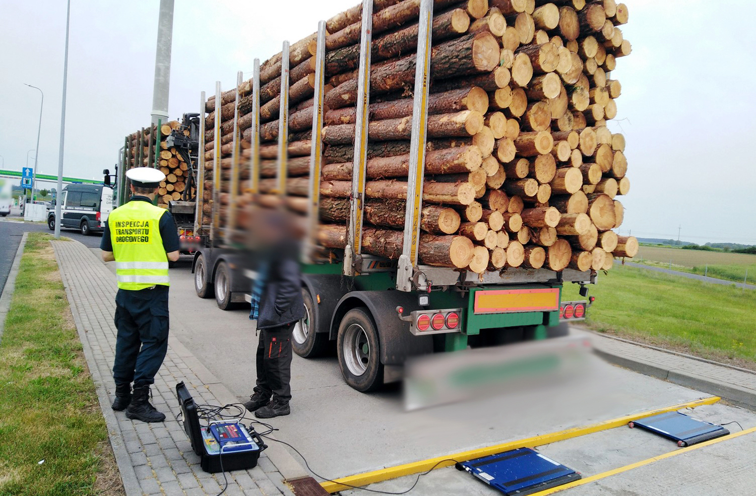 W środę (25 maja), na zachodniej obwodnicy Gniezna (ekspresowa „piątka”), inspektorzy wielkopolskiej Inspekcji Transportu Drogowego zatrzymali nienormatywny zespół pojazdów. Przewożono nim 42,78 m³ drewna sosnowego, ułożonego w pięciu stosach. Taka ilość spowodowała przekroczenie dopuszczalnej masy całkowitej pojazdów aż o 24,3 t. Zamiast dozwolonych 40 t, przeładowany zestaw ważył 64,3 t. Natomiast nacisk podwójnej osi napędowej pojazdu ciężarowego był przekroczony ponad normę o 3,8 t i wyniósł 22,8 t. Oprócz tego zespół pojazdów był za długi o prawie metr i powinien towarzyszyć mu w czasie przewozu pojazd pilotujący, czyli odpowiednio wyposażony i oznakowany pojazd samochodowy, przy którego użyciu pilot zabezpiecza przejazd pojazdu nienormatywnego. Analiza czasu pracy kierowcy także wykazała nieprawidłowości. Mężczyzna przekroczył czas prowadzenia pojazdu bez wymaganej przerwy. Nie wprowadzał również danych na kartę kierowcy. Inspektorzy ITD ukarali kierowcę mandatem karnym. Wobec przewoźnika wszczęto postępowanie administracyjne, zagrożone karą pieniężną. Przed kontynuacją jazdy, nadmiar drewna musiało zostać przeładowany na inny zespół pojazdów.