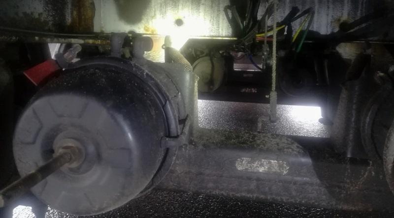 W trakcie oględzin stanu technicznego naczepy zauważano, że od siłownika hamulcowego przy lewym kole na trzeciej osi pojazdu odłączono przewody pneumatyczne. Ponadto kierowca i jednocześnie prezes przedsiębiorstwa zamontował w siłowniku dodatkową śrubę w celu odblokowania hamulca. Tłumaczył to awarią siłownika i chęcią dojazdu do warsztatu po zakończonym przewozie ładunku. W trakcie dalszej kontroli inspektorzy ujawnili, że tachograf cyfrowy po zmianie rozmiaru opon na osi napędowej ciągnika siodłowego nie został poddany kalibracji. Oprócz tego analiza czasu pracy kierowcy wykazała liczne naruszenia obowiązujących przepisów.