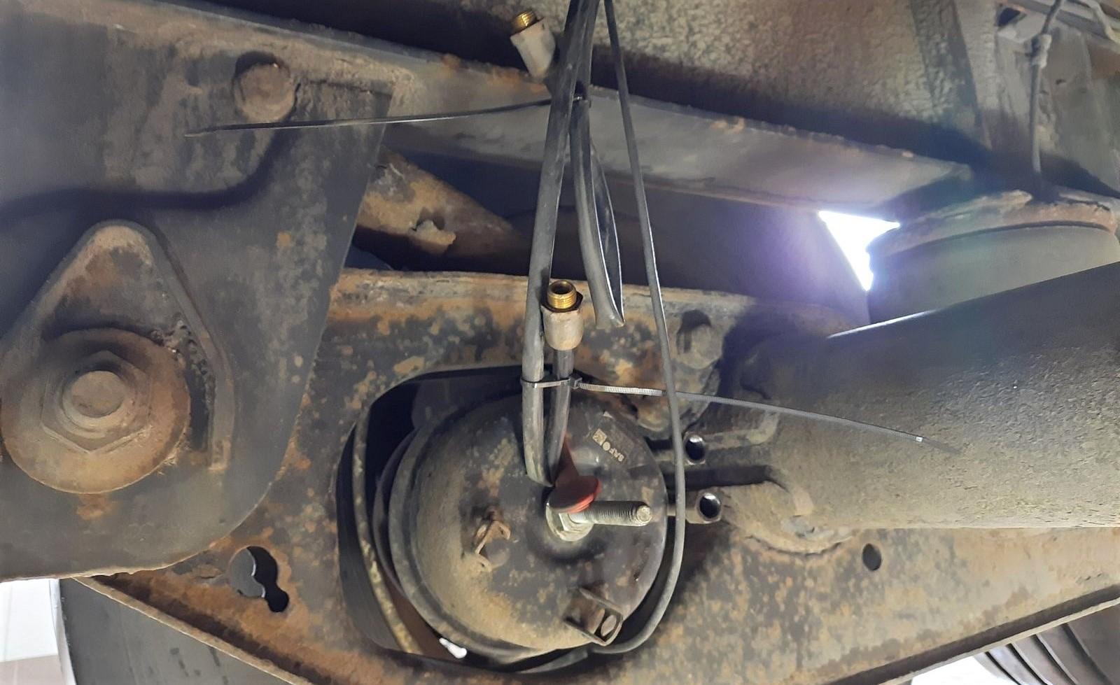 Gdy inspektor dostał się pod naczepę okazało się, że siłowniki hamulcowe przy dwóch kołach odłączono od układu pneumatycznego. Z kolei przewody układu zaciśnięto tzw. „trytytkami”, żeby uniemożliwić wypływ powietrza. Kierowca poinformował, że kilka dni wcześniej doszło do awarii – hamulce zablokowały dwa z sześciu kół naczepy. Postanowił dokonać niebezpiecznej przeróbki układu hamulcowego, aby dojechać na czas do miejsca rozładunku towaru. W trakcie dalszej kontroli stanu technicznego zauważono również pękniętą tarczę hamulcową przy jednym z kół naczepy.