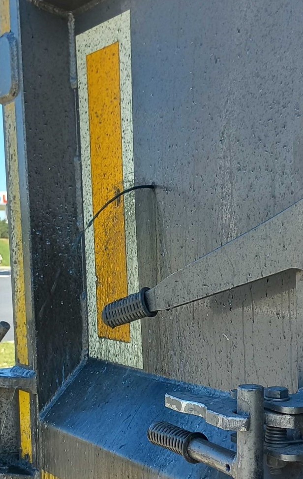 Podczas czynności kontrolnych stwierdzono, że zestaw przewozi prawie 24,5 t osadów pochodzących z oczyszczalni ścieków i odpadów poubojowych. Ciecz wydostawała się przez niewielki otwór w tylnej burcie naczepy. W celu zatrzymania wycieku, kierowca doraźnie zaślepił otwór za pomocą śruby.