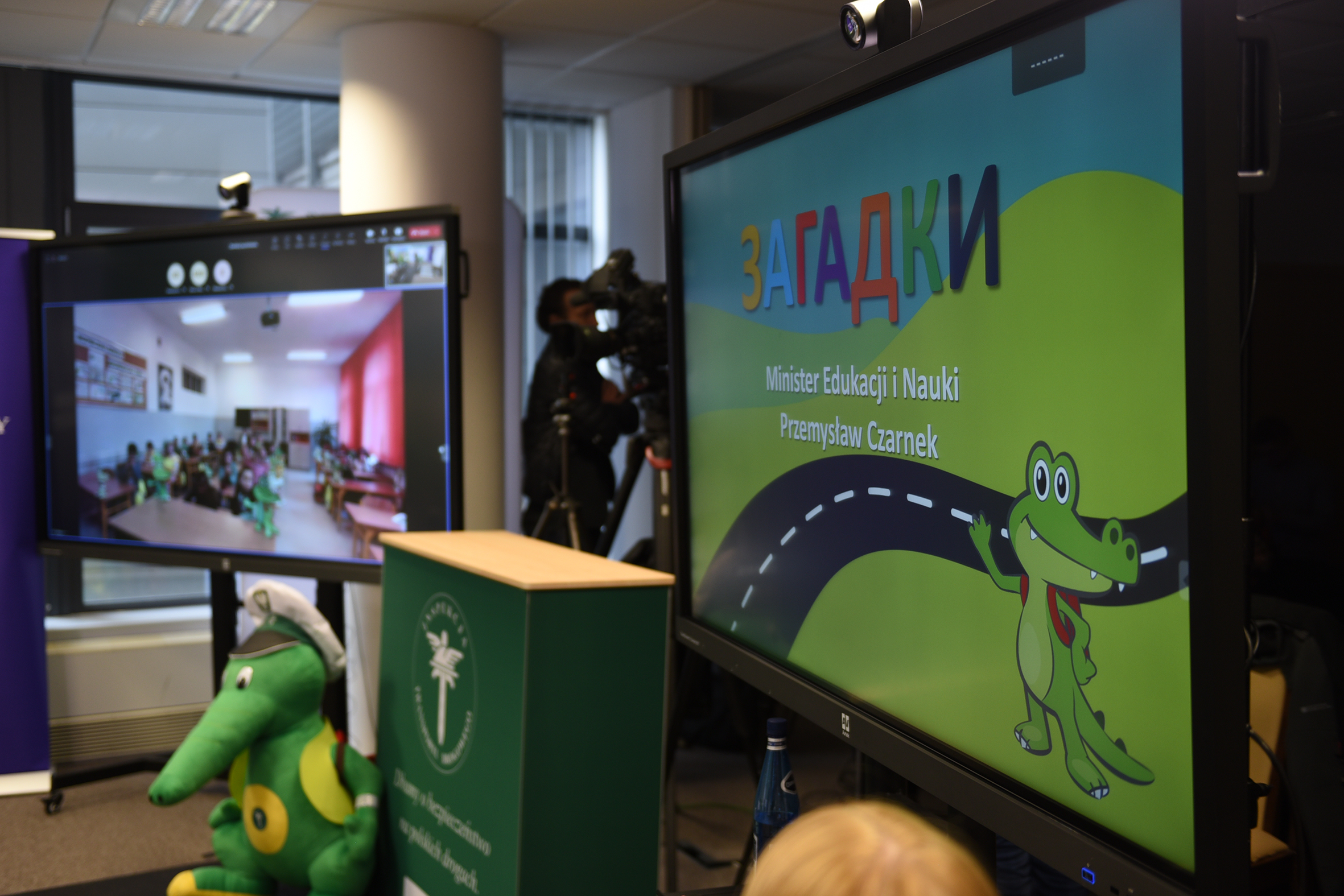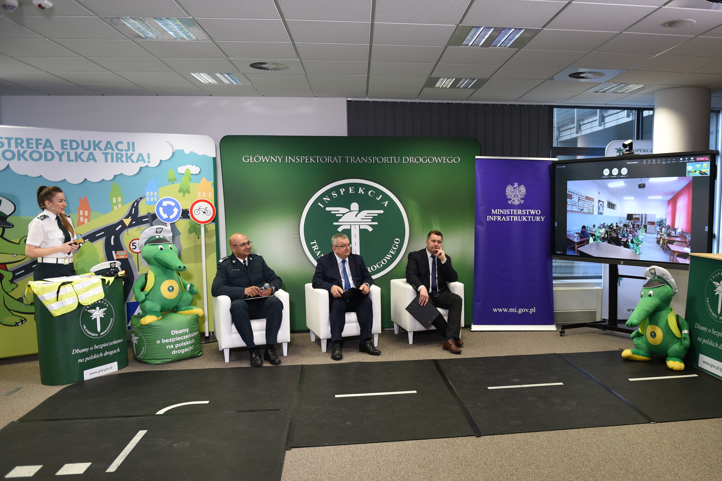 Szkoła Bezpieczeństwa Krokodylka Tirka zawitała do pierwszej szkoły, w której uczą się dzieci uchodźców z Ukrainy. O zasadach bezpieczeństwa ruchu drogowego, w trakcie lekcji online, z najmłodszymi rozmawiali Minister Infrastruktury Andrzej Adamczyk, Minister Edukacji i Nauki Przemysław Czarnek oraz Główny Inspektor Transportu Drogowego Alvin Gajadhur.