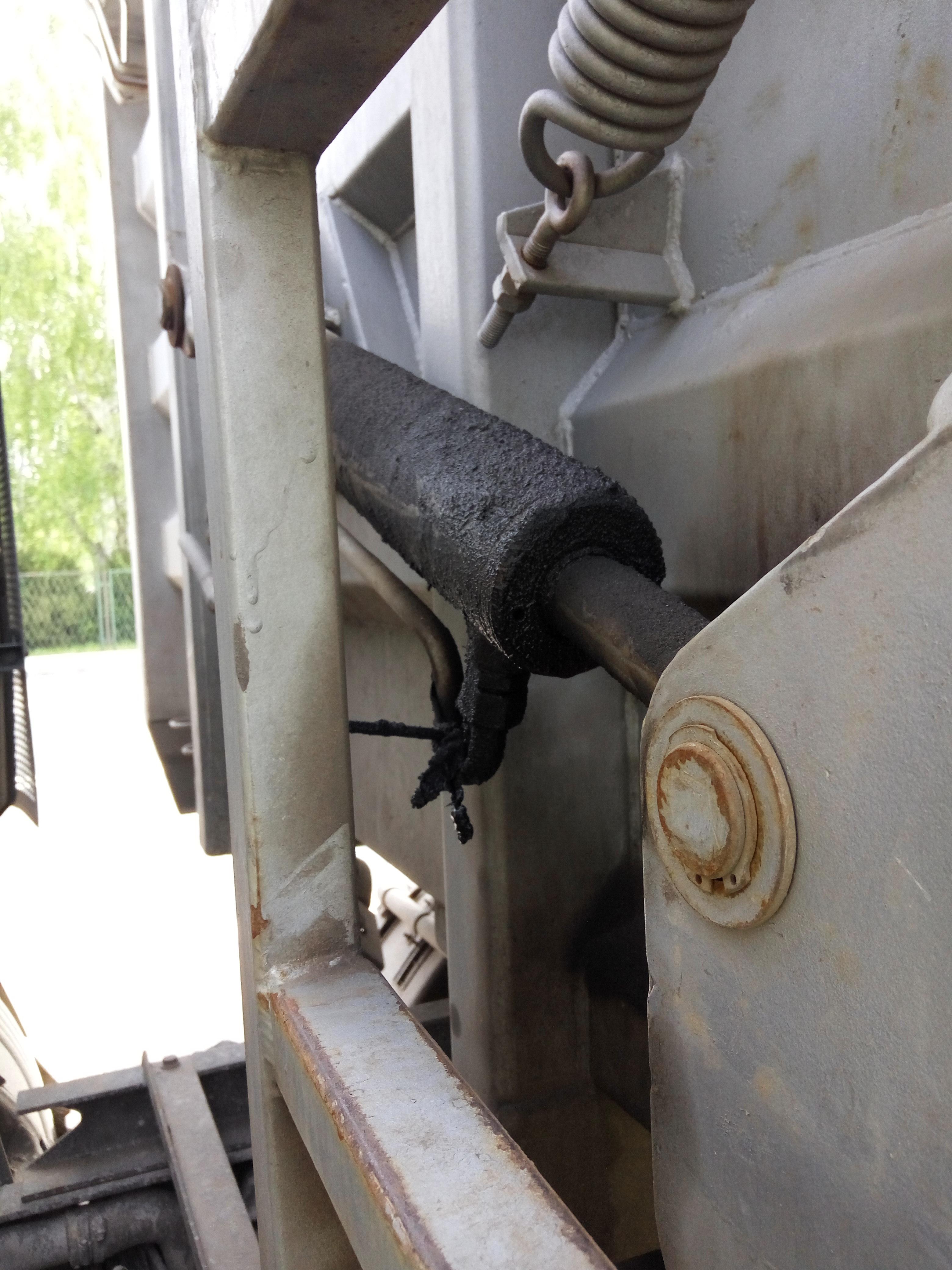 Kierowca, podczas przeprowadzonych przez inspektorów GITD czynności kontrolnych, dostarczył wielu powodów do dyskwalifikacji używanego przez niego pojazdu z możliwości dalszej jazdy. Oprócz stwierdzonej nieszczelności w układzie hamulcowym, niesprawnych światłach przeciwmgłowych tylnych, wyciekach płynów eksploatacyjnych czy przewożeniu ładunku sypkiego bez odpowiedniego zabezpieczenia, za skrajnie nieodpowiedzialne należy uznać mocowanie tylnego amortyzatora na…drucie!