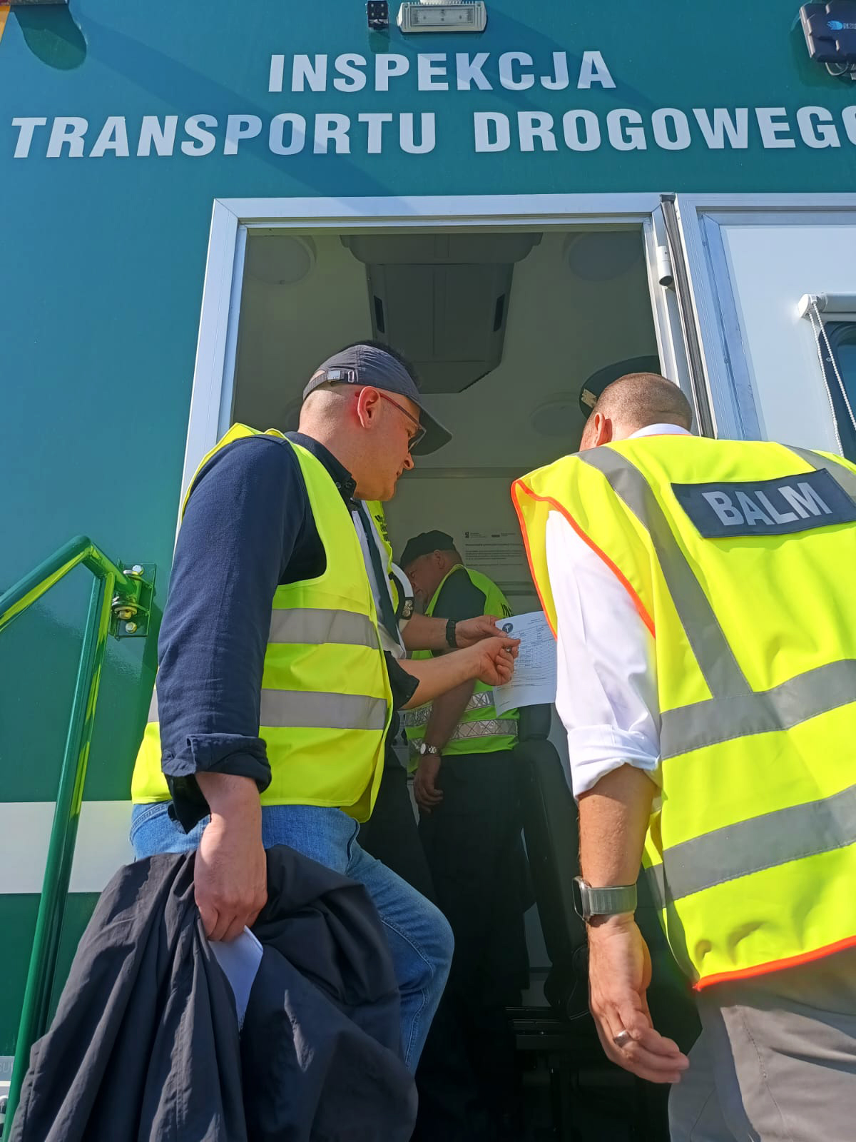 Po spotkaniu uczestnicy udali się na punkt kontrolny A2 MOP Gnilec, gdzie przeprowadzone zostały wspólne kontrole drogowe. Była to doskonała okazja do wymiany doświadczeń oraz prezentacji zaawansowanego sprzętu kontrolnego używanego przez służby obu krajów. Inspektorzy skupili się na badaniu stanu technicznego pojazdów, kontrolach nacisku na osie oraz analizie czasu pracy kierowców. W wyniku przeprowadzonych 14 kontroli zatrzymano 5 dowodów rejestracyjnych, wszczęto 4 postępowania administracyjne oraz wystawiono 6 mandatów karnych.