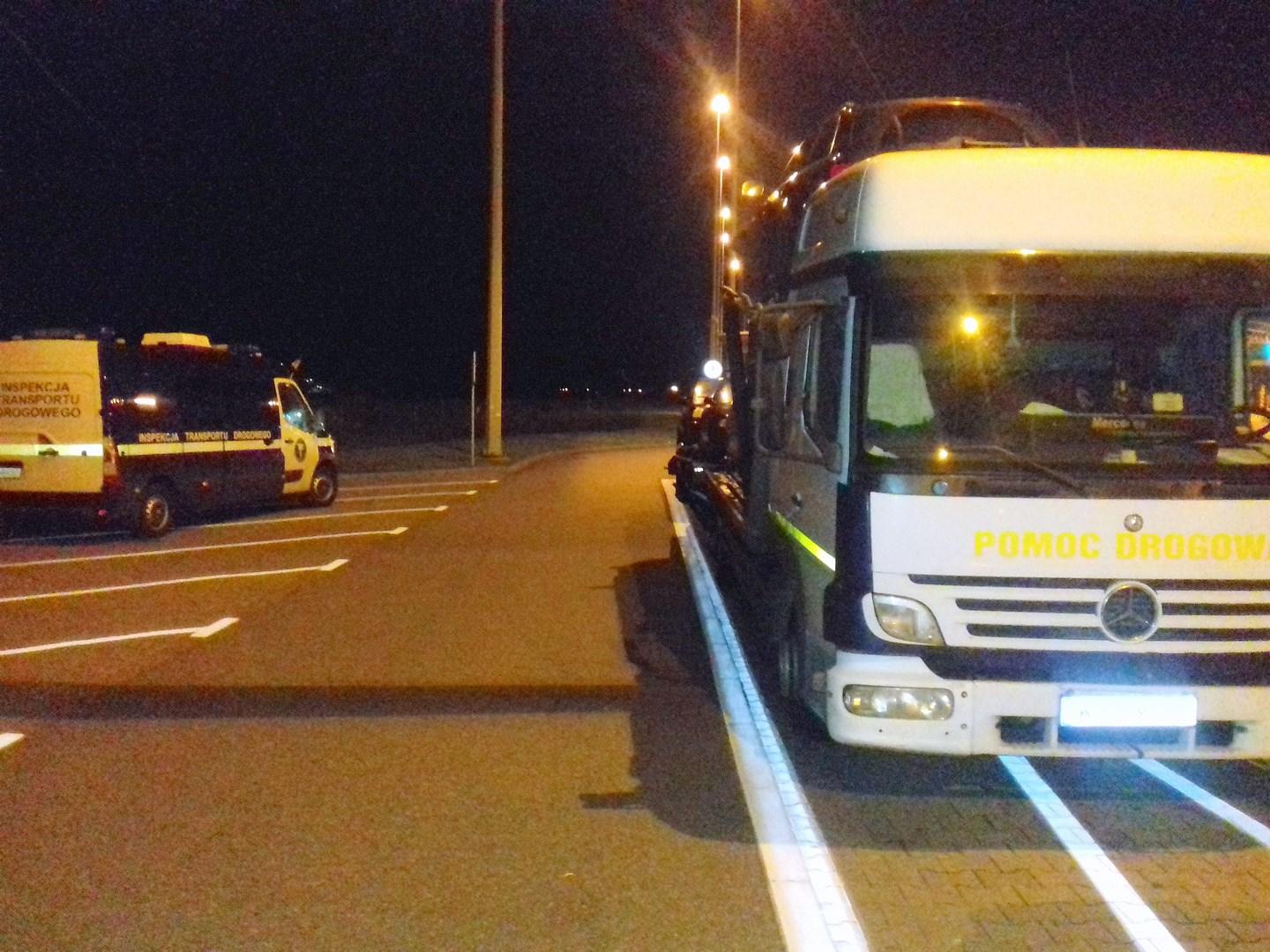 Kierowca pomocy drogowej nie przestrzegał norm czasu pracy. Skrócił czas dziennego odpoczynku o ponad godzinę. Nie posiadał także dokumentu przewozowego (CMR), który jest wymagany przy przewozie aut używanych. Sporo zastrzeżeń inspektorzy mieli do samego pojazdu pomocy drogowej. Samochód miał niesprawne światła cofania i pozycyjne z przedniej lewej strony, wadliwe opony. Brakowało także nalepki kontrolnej numeru rejestracyjnego pojazdu na przedniej szybie. Natomiast przyczepa, którą przewożono auta miała niesprawny prawy kierunkowskaz, uszkodzoną piastę, brakowało koła.
