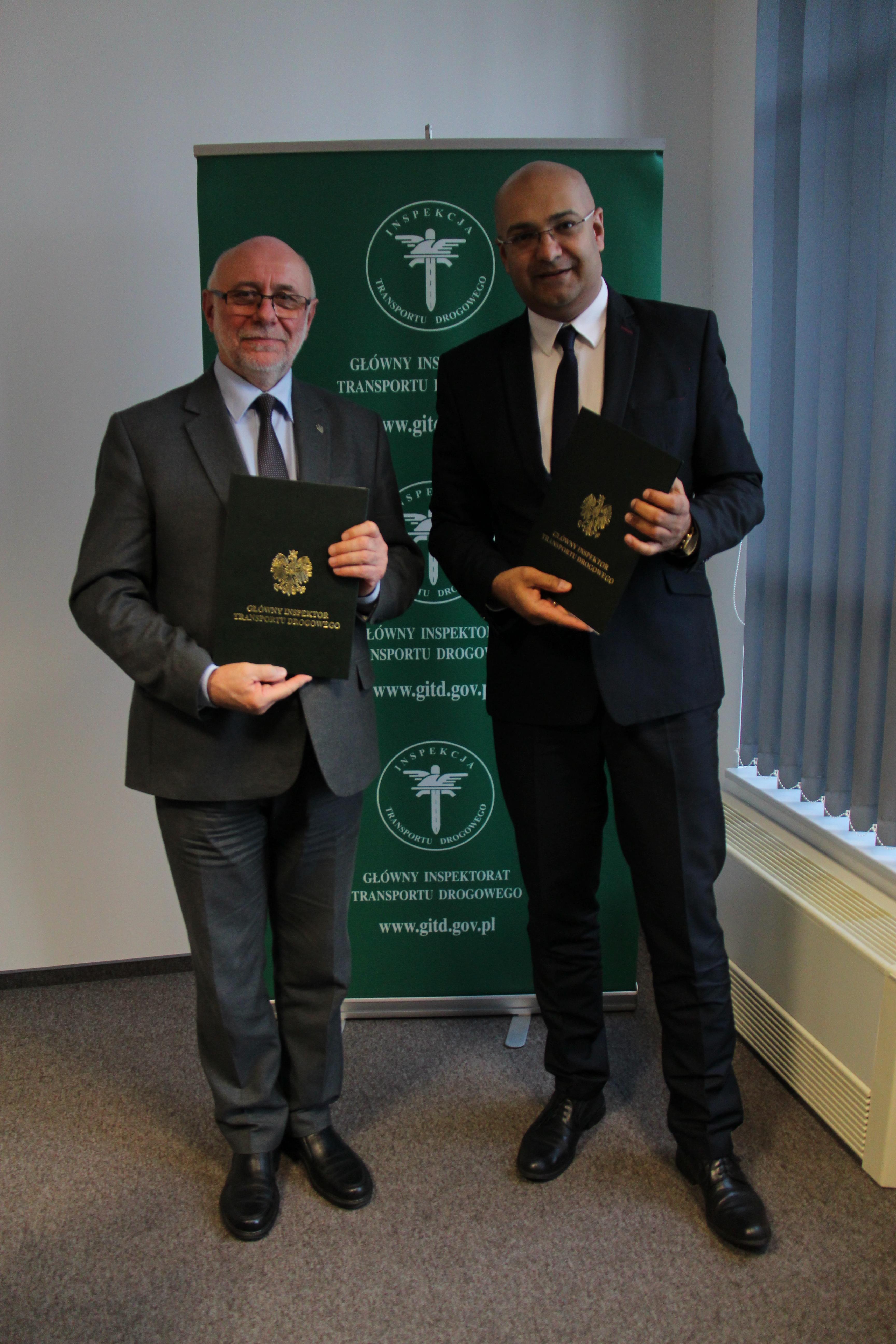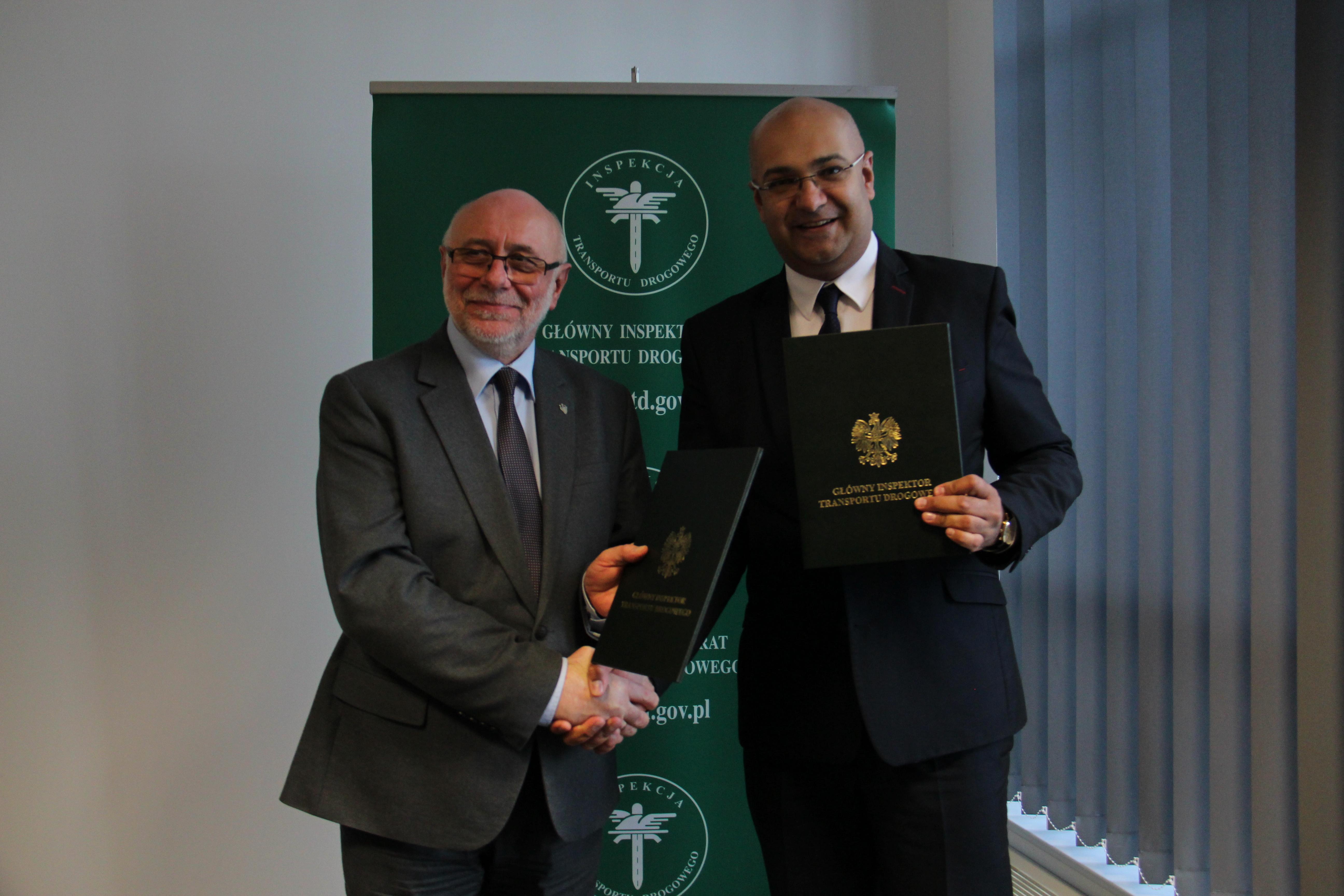 W czwartek 5 kwietnia Główny Inspektor Transportu Drogowego dr inż. Alvin Gajadhur podpisał porozumienie o współpracy z Rektorem Politechniki Warszawskiej prof. dr hab. inż. Janem Szmidtem.