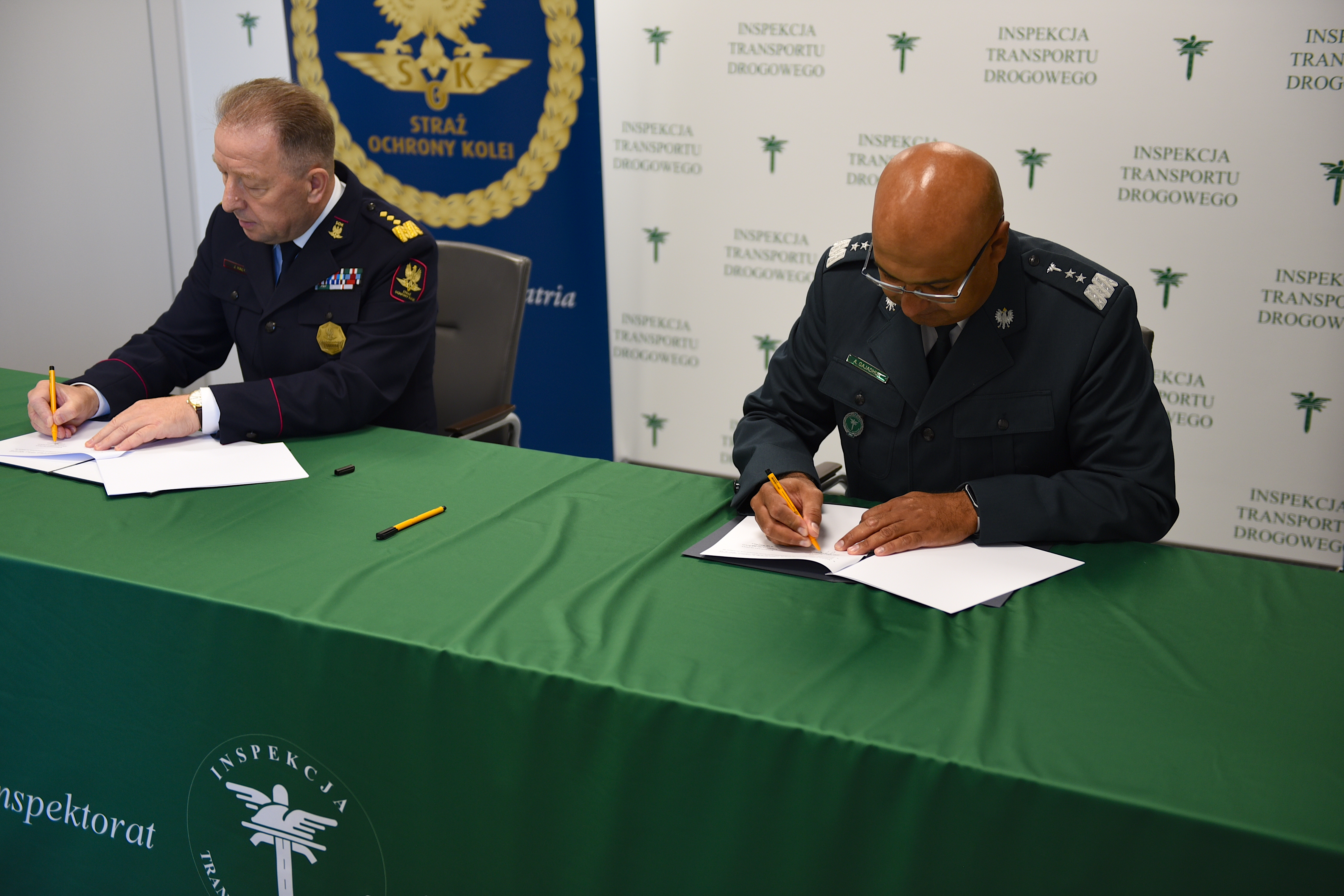 Główny Inspektor Transportu Drogowego Alvin Gajadhur i Komendant Główny Straży Ochrony Kolei Józef Hałyk podpisali dziś w siedzibie GITD porozumienie o współpracy. Wspólne czynności kontrolne oraz działania w obszarze organizacji kampanii edukacyjnych, społecznych i prewencyjnych mają wpłynąć na poprawę bezpieczeństwa w ruchu drogowym.