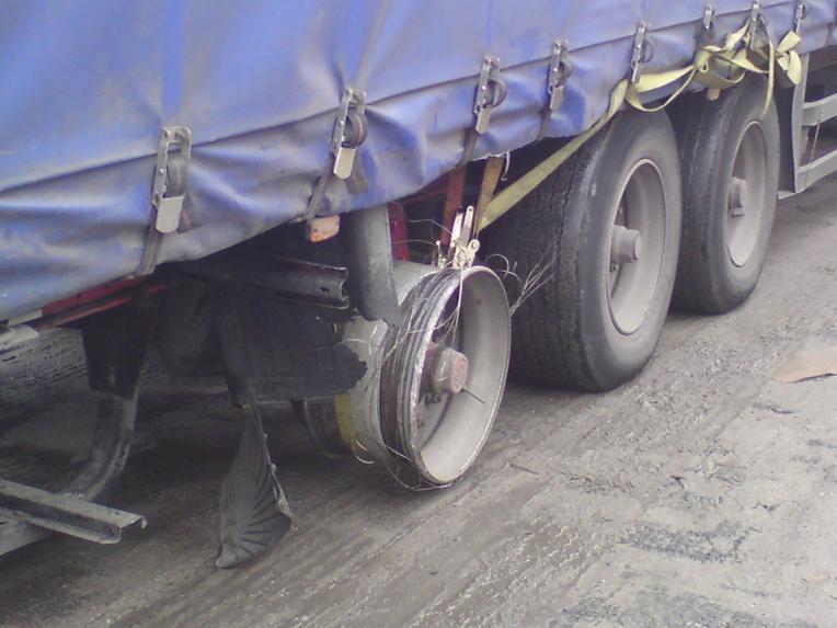 Po zatrzymaniu pojazdu okazało się, że w naczepie brakuje ogumienia jednego z kół, a dodatkowo upłynął termin badań technicznych samego ciągnika siodłowego. Pomimo tak poważnych uchybień kierowca dopuścił pojazd do ruchu przewożąc przy tym 22 tony ładunku. Inspektorzy zatrzymali dowody rejestracyjne pojazdu i naczepy oraz nałożyli na kierowcę mandat karny. Następnie skierowali pojazd na najbliższy bezpieczny punkt, zabezpieczając jego przejazd. Jak się okazało zabezpieczenie pojazdu było konieczne, ponieważ w trakcie przejazdu pękło jedno z mocowań ładunku. Szczęśliwie nie doszło do wydostania się ładunku.