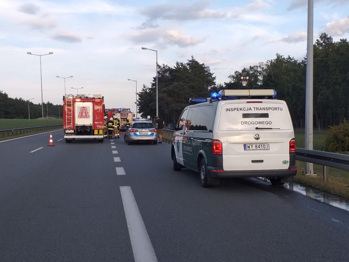 Sześć zastępów straży pożarnej gasiło pożar naczepy ciężarówki, do którego doszło w środę 19 sierpnia na autostradzie A2. W akcji pomagali także wielkopolscy inspektorzy Inspekcji Transportu Drogowego.