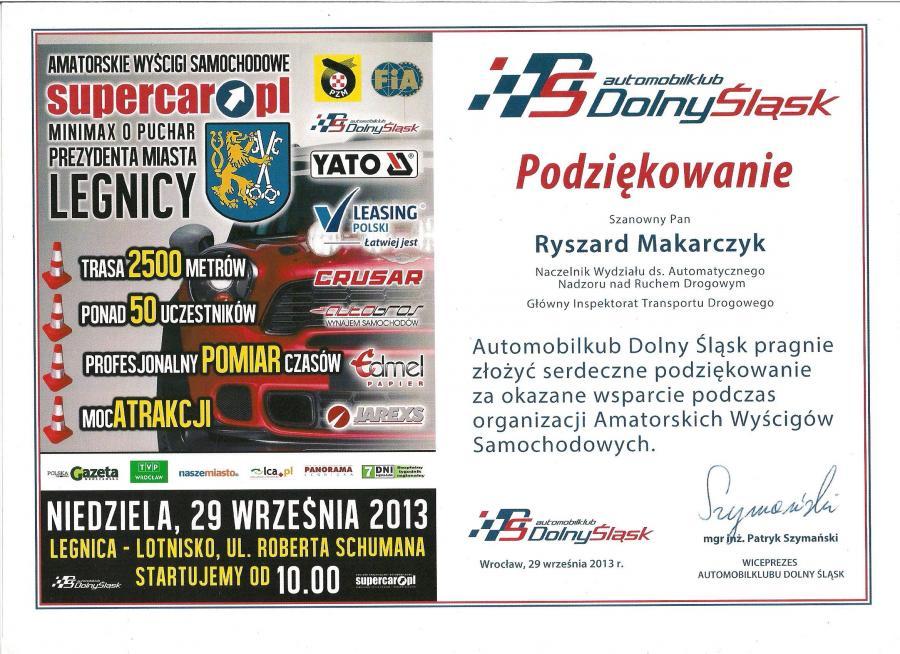 W dniu 29 września kontrolerzy oraz pracownicy GITD z Delegatury Południowo-Zachodniej we Wrocławiu i Bolesławcu prezentowali urządzenia rejestrujące prędkość oraz pojazdy wykorzystywane do kontroli elektronicznego poboru oplat będące na wyposażeniu Głównego Inspektoratu Transportu Drogowego na wyścigach samochodowych MINIMAX o puchar Prezydenta Miasta Legnica. W prezentacji brały udział dwa wydziały GITD - Wydział Automatycznego Nadzoru nad Ruchem Drogowym oraz Wydział Elektronicznego Poboru Opłat.