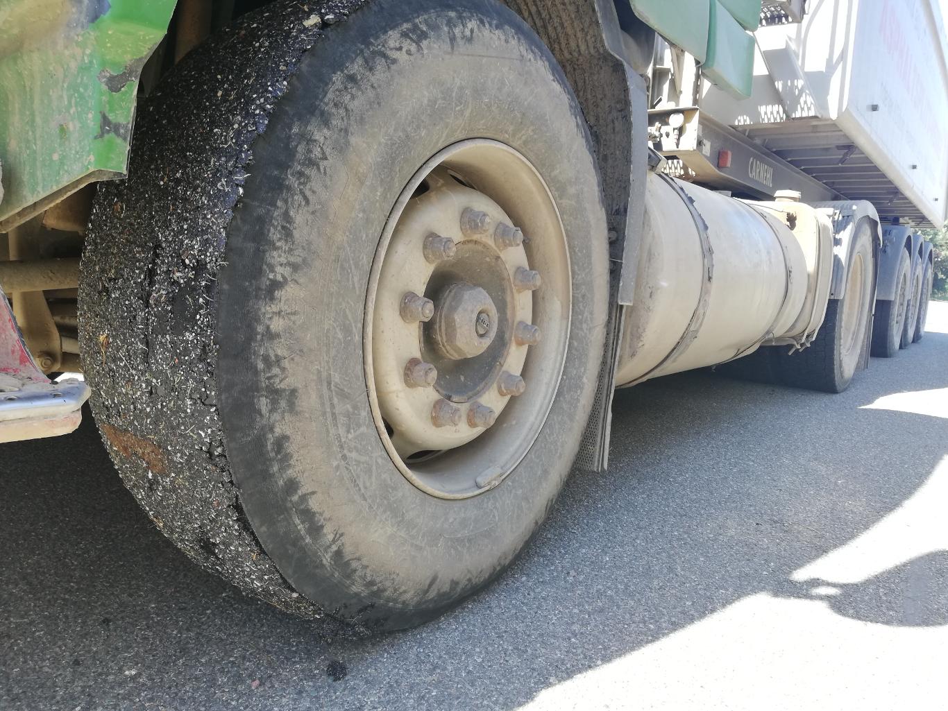 Zdziwienie kontrolujących wzbudziło koło trzeciego pojazdu. Było oblepione materiałem użytym do budowy drogi. To dowód na postępujące niszczenie, bo znaczne przeładowanie ciężarówek wpływa na degradację dróg, szczególnie kiedy temperatura nawierzchni wzrasta przy panujących upałach.
