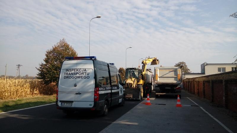 Kontrola dwóch ciągników z naczepami wypełnionymi materiałami sypkimi odbyła się w czwartek (18 października) na terenie Łabiszyna, w powiecie żnińskim.