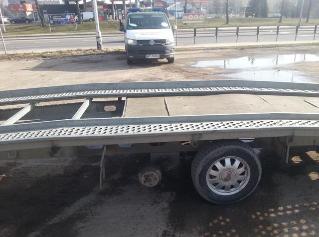 Brak koła na jednej z osi przyczepy był powodem kontroli pojazdów służących do przewozu samochodów. Niesprawne technicznie auto prowadził kierowca bez odpowiedniej kategorii prawa jazdy.