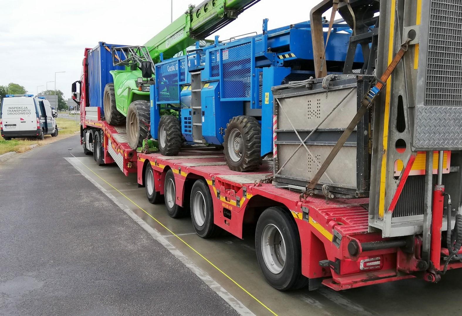 Przewoźnik, który transportował maszyny budowlane, naruszył wszystkie parametry normatywności. Kontrolę przeprowadzili wielkopolscy inspektorzy Inspekcji Transportu Drogowego.