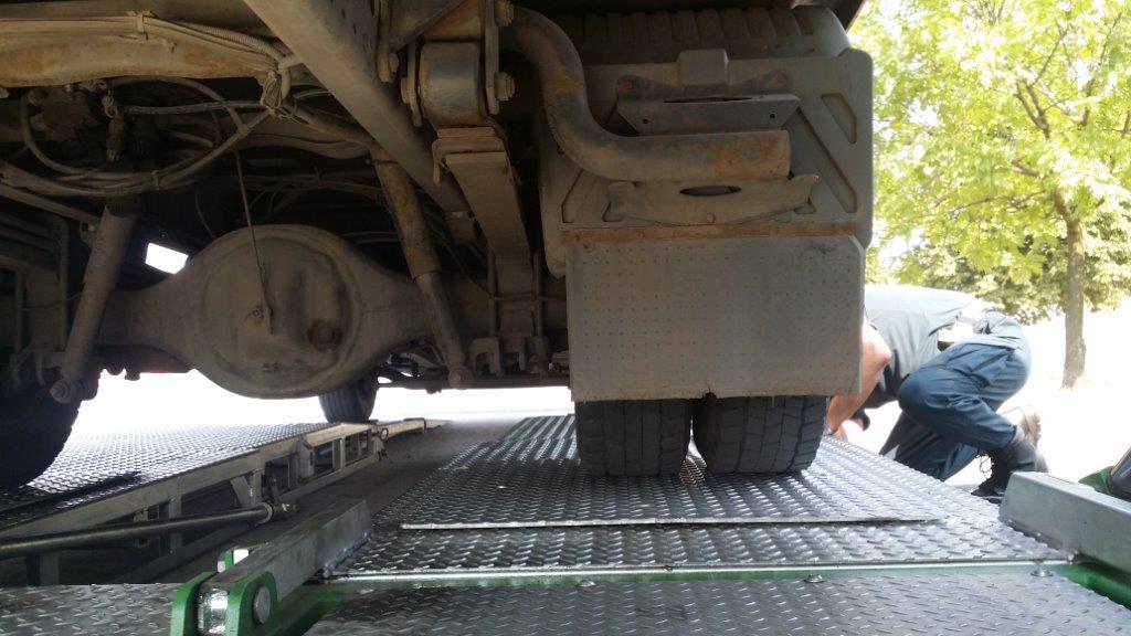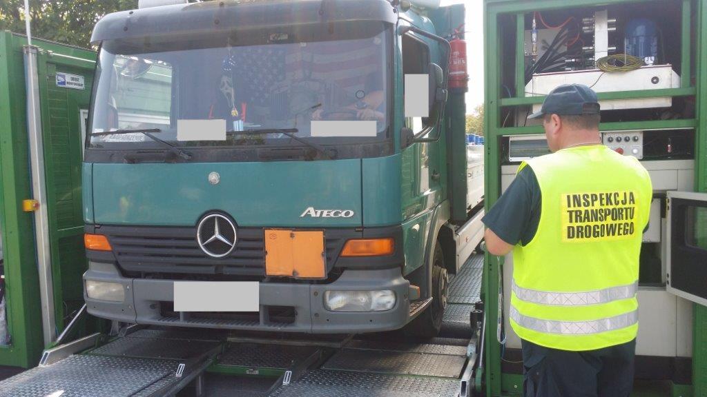 W dniu 7 sierpnia w Legnicy inspektorzy z Dolnośląskiego Wojewódzkiego Inspektoratu Transportu Drogowego zatrzymali do rutynowej kontroli pojazd ciężarowy oznakowany tablicami barwy pomarańczowej, przewożący 181 butli z mieszaniną gazu palnego UN 1965, o łącznej masie netto przekraczającej 1900 kg. W toku czynności kontrolnych ustalono, iż kierujący nie posiada przy sobie pisemnej instrukcji dla kierowcy, zawierającej wykaz wyposażenia pojazdu oraz czynności, jakie powinny być wykonane w sytuacjach awaryjnych, w celu zminimalizowania zagrożenia wynikającego z właściwości materiału niebezpiecznego. Ponadto, kontrolowana jednostka transportowa o dopuszczalnej masie całkowitej przekraczającej 7,5 tony powinna być wyposażona w co najmniej dwie gaśnice przenośne o minimalnej całkowitej pojemności wynoszącej 12 kg. Kierowca dysponował zaledwie dwiema gaśnicami: 2 kg + 6 kg. Dalsza kontrola stanu technicznego przy użyciu Mobilnej Linii Diagnostycznej wykazała kolejne nieprawidłowości, m.in. niesprawny układ hamulcowy. Podczas jego kontroli słychać było wyraźny ubytek powietrza z siłownika hamulcowego, a po chwili potężny huk już wcześniej pękającej membrany siłownika. Ponadto, w układzie kierowniczym ujawniono nadmierny luz na połączeniach sworzniowych poprzecznego drążka kierowniczego. Nadmierne luzy były również zauważalne w mocowaniach przedniego stabilizatora oraz amortyzatora, co zapewne miało przełożenie na stabilność pojazdu podczas jazdy. Brak było również tylnego stabilizatora - zostały po nim jedynie uchwyty do jego mocowania. Końcowy tłumik wydechu, mimo prowizorycznych napraw sprowadzających się do przynitowania blachy zasłaniającej przedmuchy, nie spełniał wymagań technicznych. Z każdej strony zaobserwować można było przedmuch spalin pozostawiający czarne smugi. |Z silnika oraz z układu pneumatycznego wydostawały się płyny eksploatacyjne. Kontrola tachografu zamontowanego w pojeździe wykazała, iż kierowca od ponad |4 miesięcy jeździł bez wymaganego sprawdzenia okresowego urządzenia. Z uwagi na wykryte naruszenia zatrzymano dowód rejestracyjny kontrolowanego pojazdu. Ciężarówka nie została dopuszczona do dalszej jazdy. Ponadto, na kierowcę nałożono mandat karny oraz wszczęto postępowania administracyjne wobec przewoźnika.