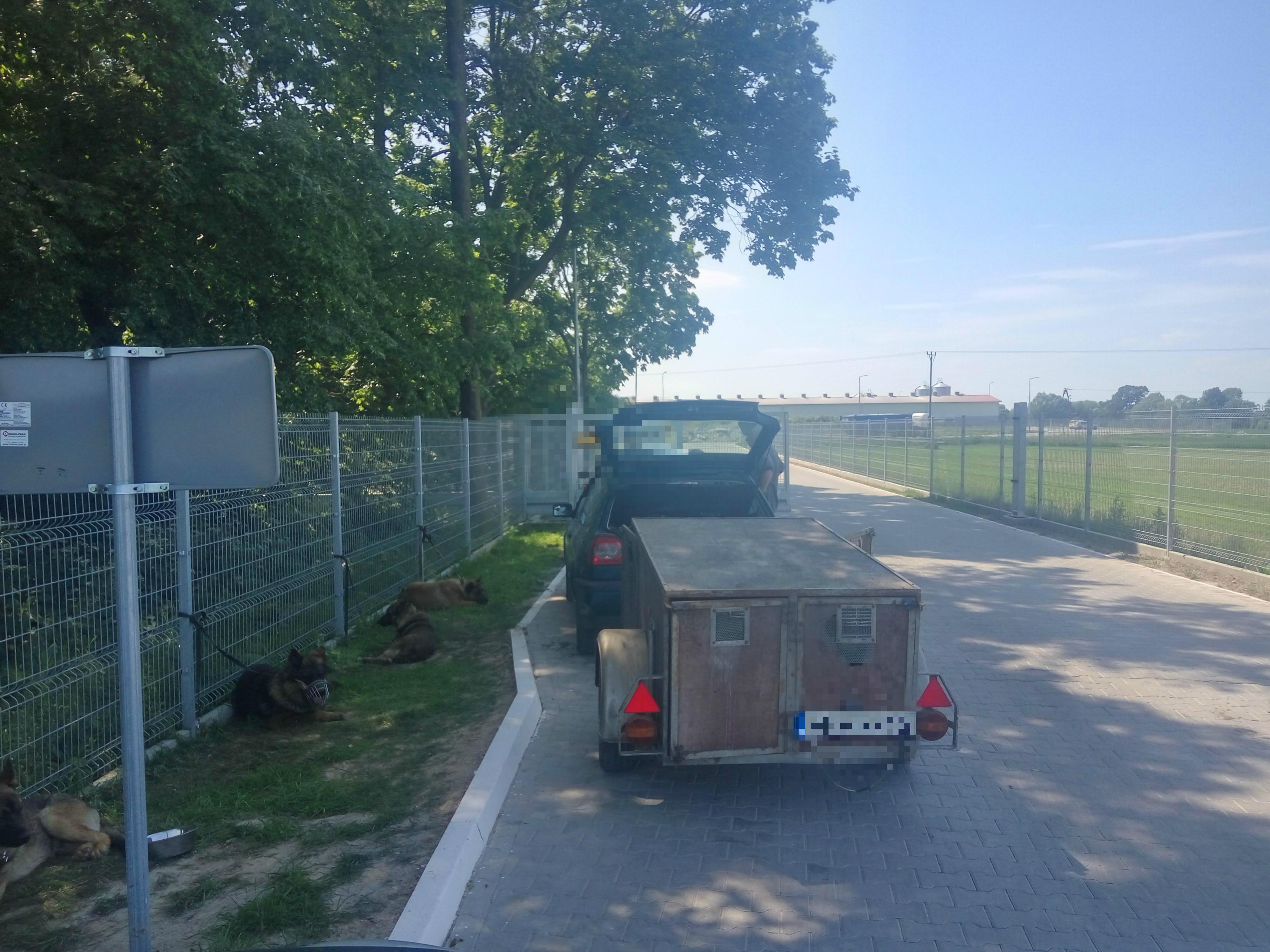 Niedługo po rozpoczęciu czynności kontrolnych okazało się, że w zamkniętej przestrzeni przyczepy o wymiarach 176cm x 110 cm x 75 cm przewożone są cztery psy (trzy owczarki belgijskie oraz jeden niemiecki). Mając na uwadze panującą wysoką temperaturę (blisko 30 stopni w cieniu) pojazd wraz z przyczepą został natychmiast skierowany w zacienione miejsce do pobliskiej miejscowości Bielany. Kierujący tłumaczył, że jedzie z Lubania Śląskiego do Bełchatowa i wraca po nieudanej próbie sprzedaży psów.