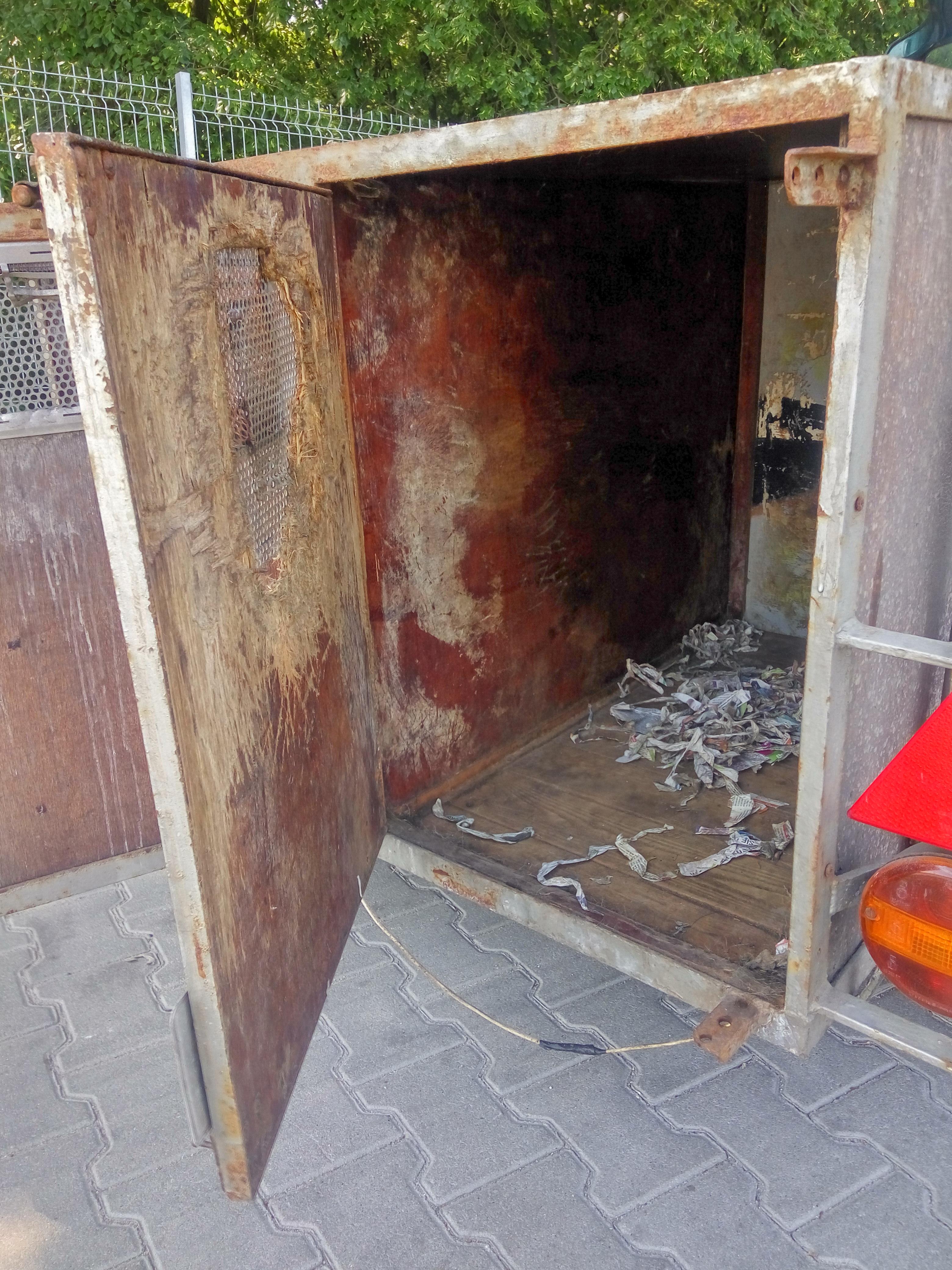 Przyczepa o wymiarach 176cm x 110 cm x 75 cm, brak otworów wentylacyjnych, wysoka temperatura i brak dostępu do wody… w takich warunkach przewożone były cztery dorosłe psy!