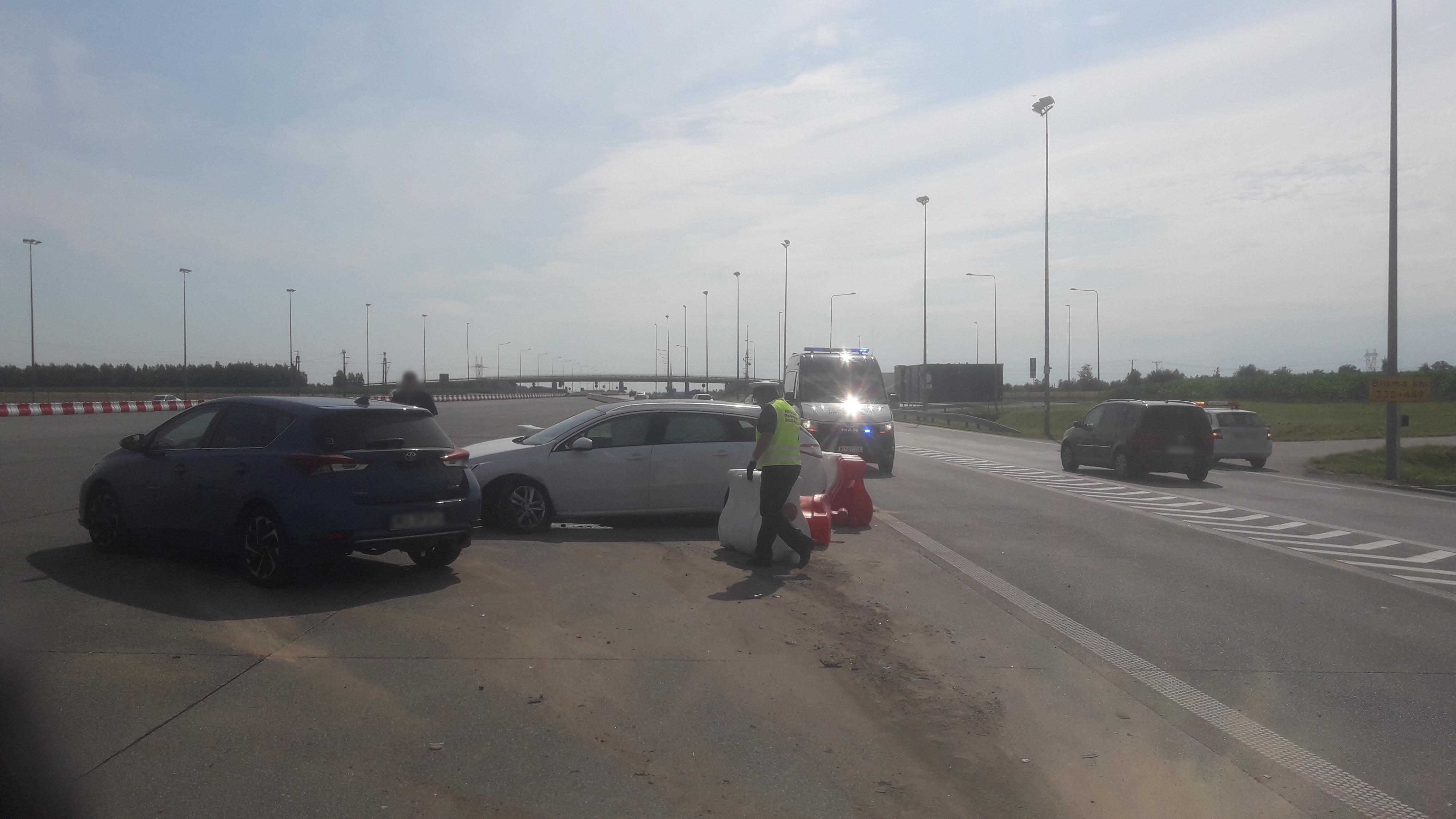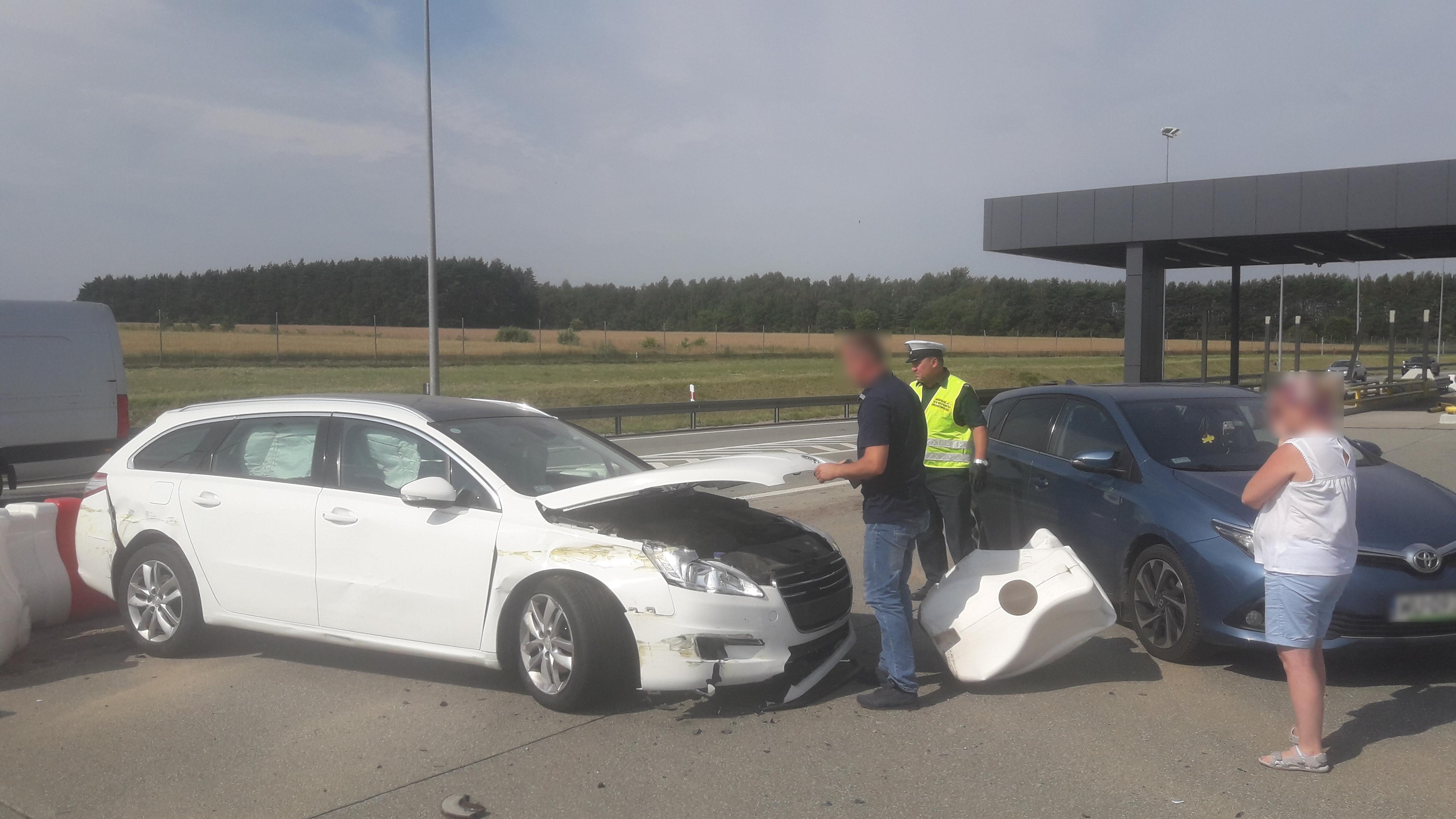 Kierujący osobówką z dużą prędkością uderzył w metalowe bariery ochronne bramek na S8, które służyć mają w przyszłości jako punkt poboru opłat. Świadkami groźnie wyglądającej kolizji byli inspektorzy z oddziału terenowego z Sieradza. Udzielili oni pierwszej pomocy poszkodowanym oraz zabezpieczyli miejsce zdarzenia.