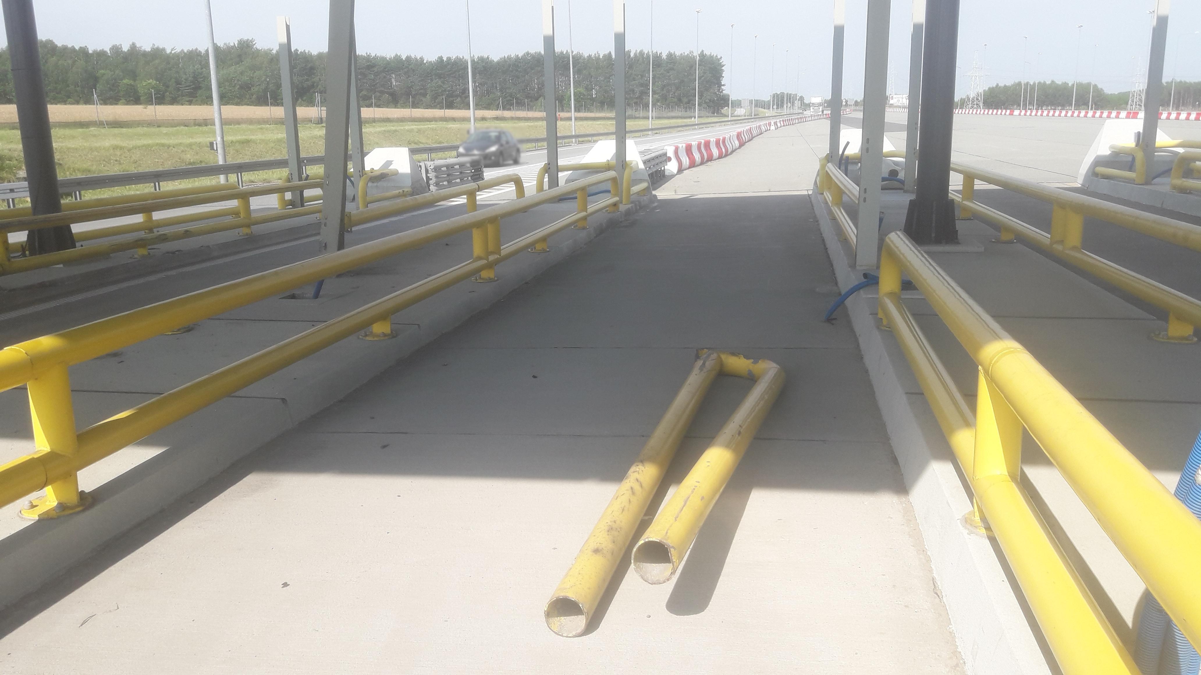 W niedzielę (19 lipca) inspektorzy z oddziału terenowego w Sieradzu, pełniący służbę na S8, byli świadkami gdy kierujący peugeotem podczas przejazdu przez bramki (mające służyć w przyszłości jako punkt poboru opłat) z dużą prędkością uderzył w metalowe bariery ochronne. Siła uderzenia była tak duża, że bariery zostały wyrwane z fundamentów i odrzucone na kilkanaście metrów. Pojazd uległ poważnemu uszkodzeniu, doszło do wycieków płynów eksploatacyjnych, a zamontowane w pojeździe poduszki powietrzne wystrzeliły. Inspektorzy natychmiast przerwali prowadzone kontrole i udzielili pomocy poszkodowanym. Nikt z podróżujących osobówką nie doznał poważnych obrażeń. O zdarzeniu poinformowano służby ratunkowe. Inspektorzy zabezpieczyli miejsce zdarzenia oraz kierowali ruchem drogowym.