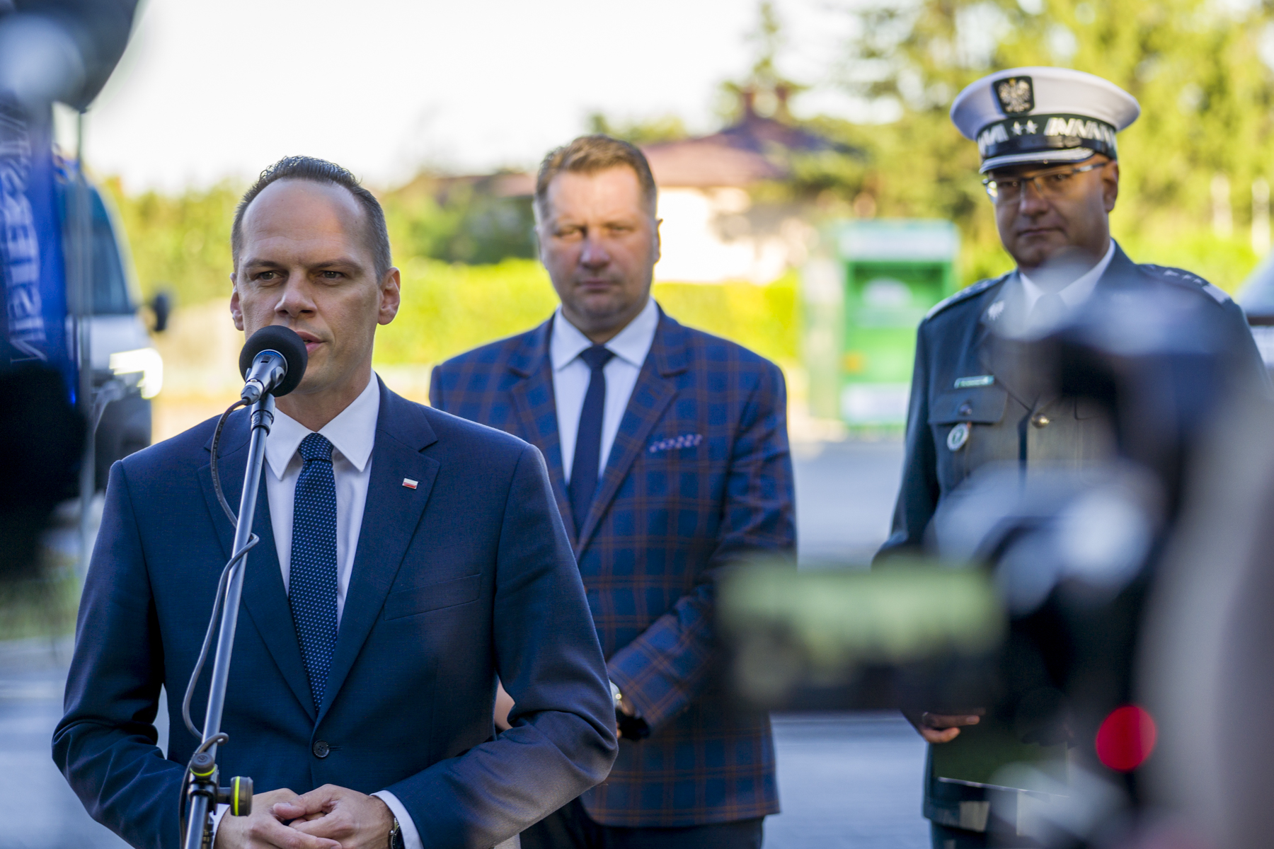 Inspektorzy Inspekcji Transportu Drogowego w całym kraju kontrolują autobusy szkolne. O działaniach prowadzonych w ramach akcji „Bezpieczna droga do szkoły” w Lesznowoli mówili dziś Minister Edukacji i Nauki Przemysław Czarnek, Wiceminister Infrastruktury Rafał Weber i Główny Inspektor Transportu Drogowego Alvin Gajadhur.