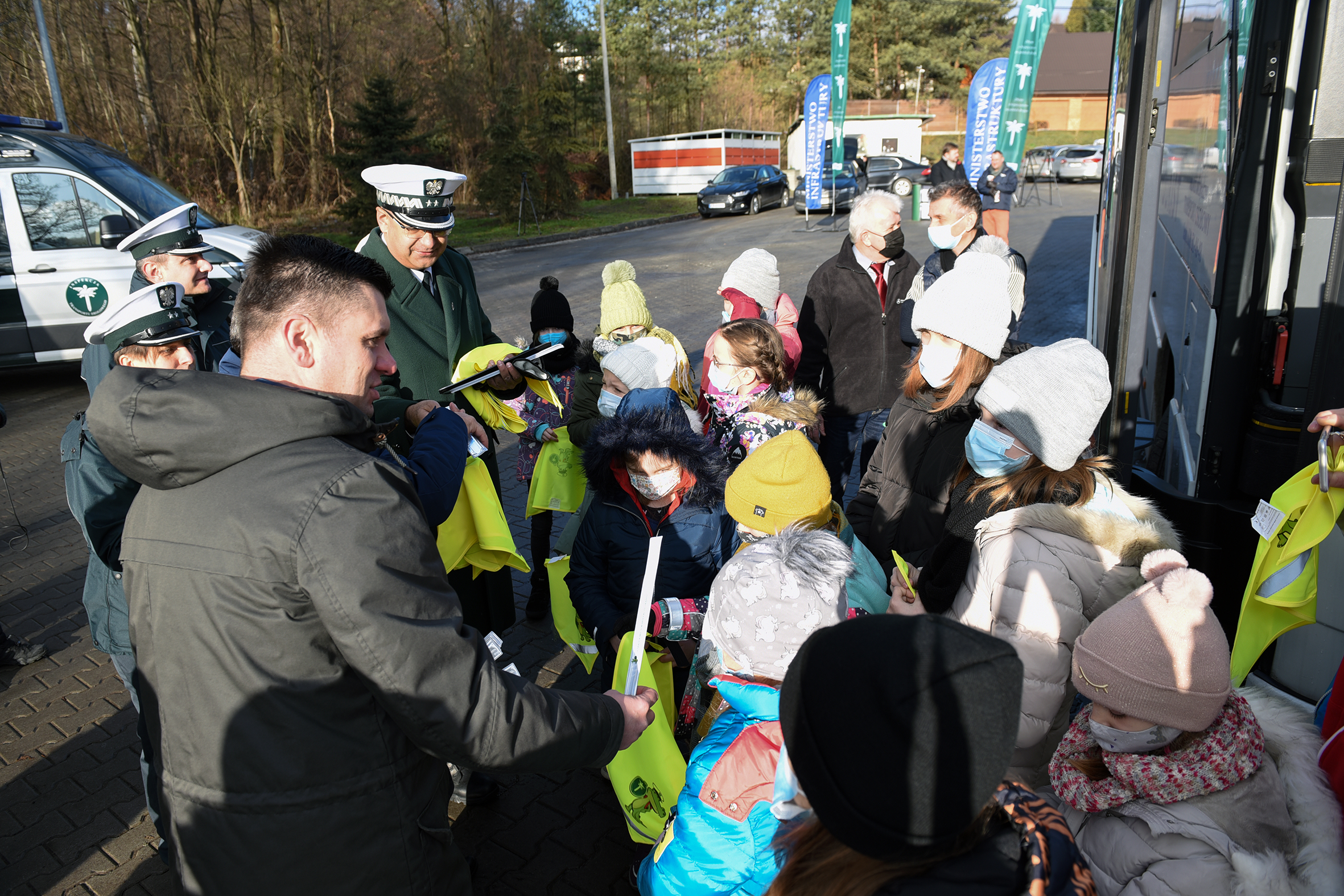 Po przeprowadzonych kontrolach kierowcy, którzy zadbali o bezpieczeństwo pasażerów, otrzymali od Ministra Infrastruktury oraz Głównego Inspektora Transportu Drogowego, pamiątkową maskotę – Krokodylka Tirka. Podróżującym dzieciom wręczono odblaskowe upominki.