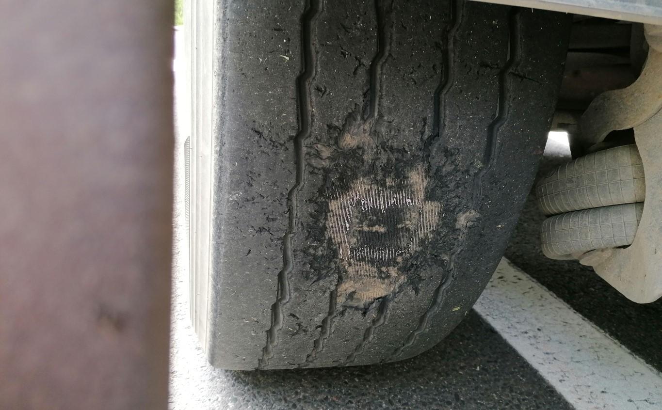Brak siły hamowania na jednym z kół naczepy stwierdzono również podczas kontroli zestawu przewożącego urządzenia sterujące. Wiele do życzenia pozostawiał też stan jego ogumienia. Pęknięta była również przednia szyba ciągnika siodłowego.