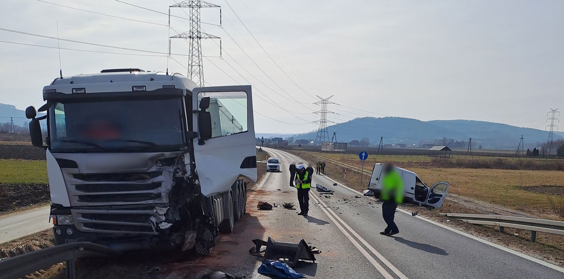 Jedna osoba zginęła w wypadku z udziałem samochodu ciężarowego i osobowego. Na miejsce zdarzenia wezwano również patrol małopolskiej Inspekcji Transportu Drogowego. Inspektorzy zabezpieczyli dane z tachografu i karty kierowcy ciężarówki. Materiał przekazano do dalszych czynności funkcjonariuszom Policji.