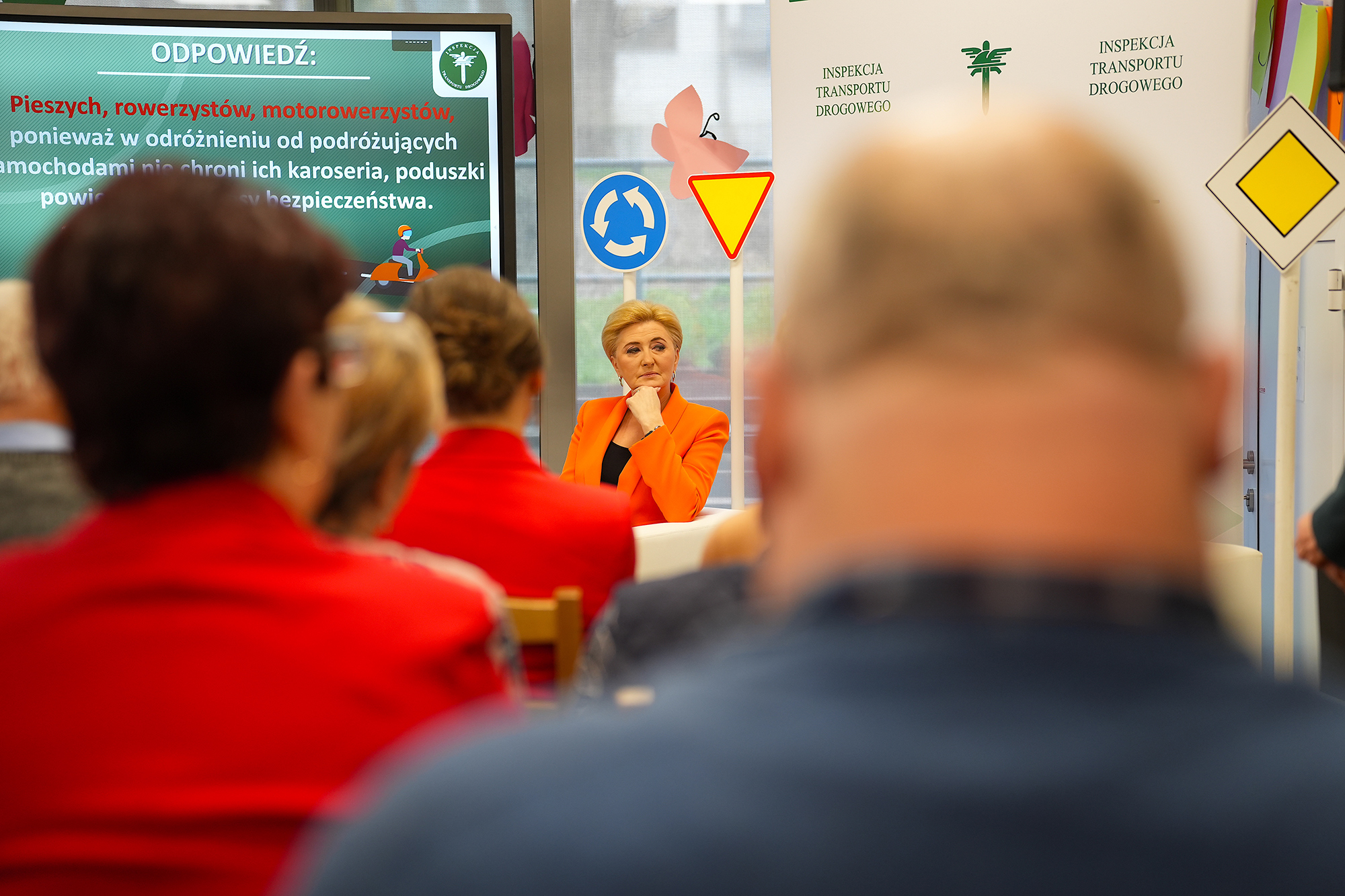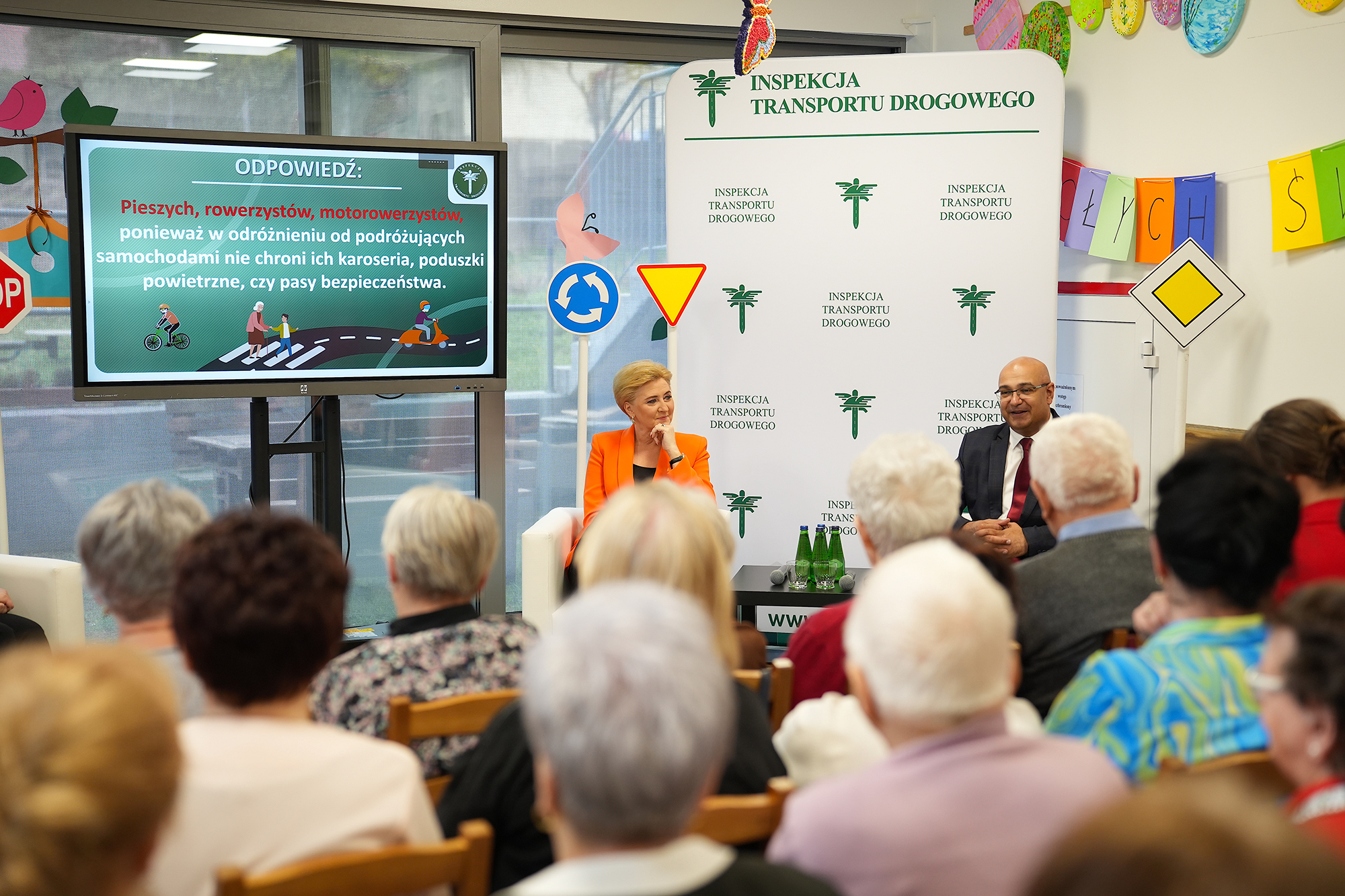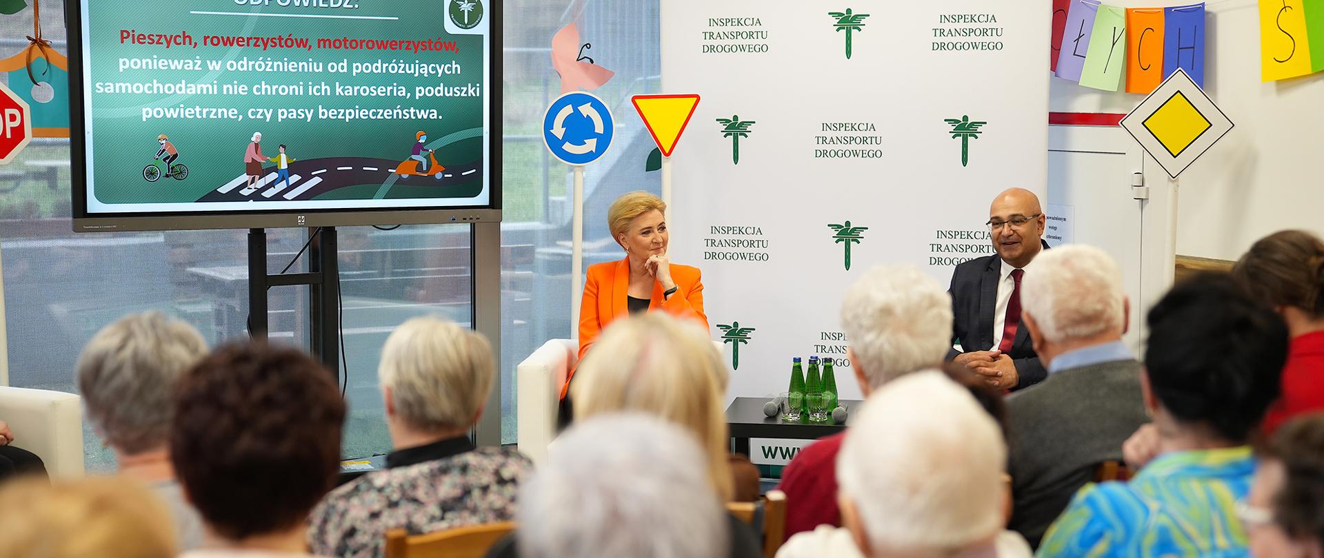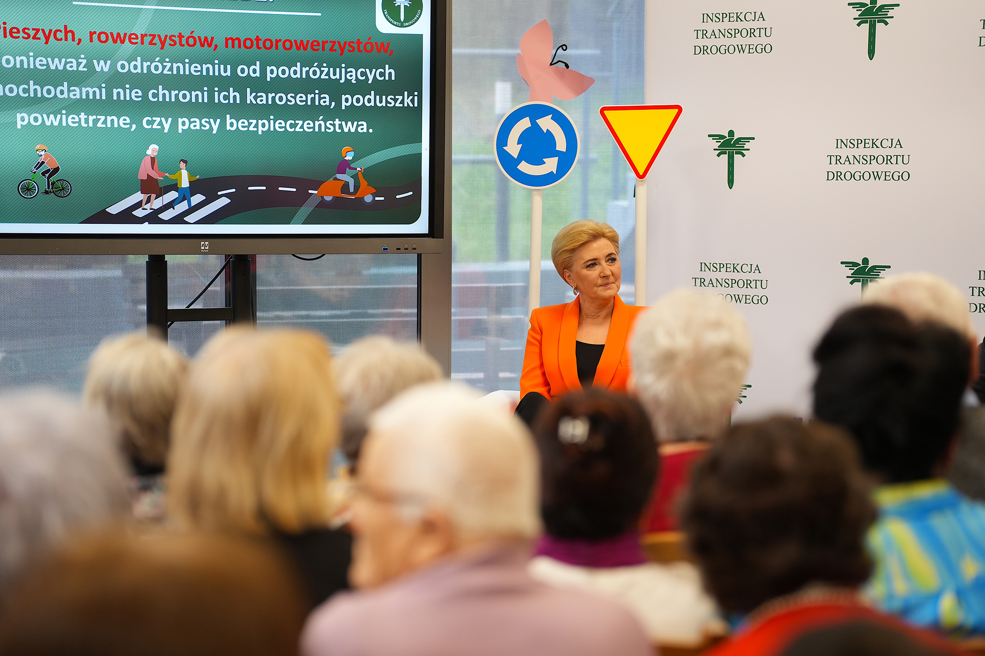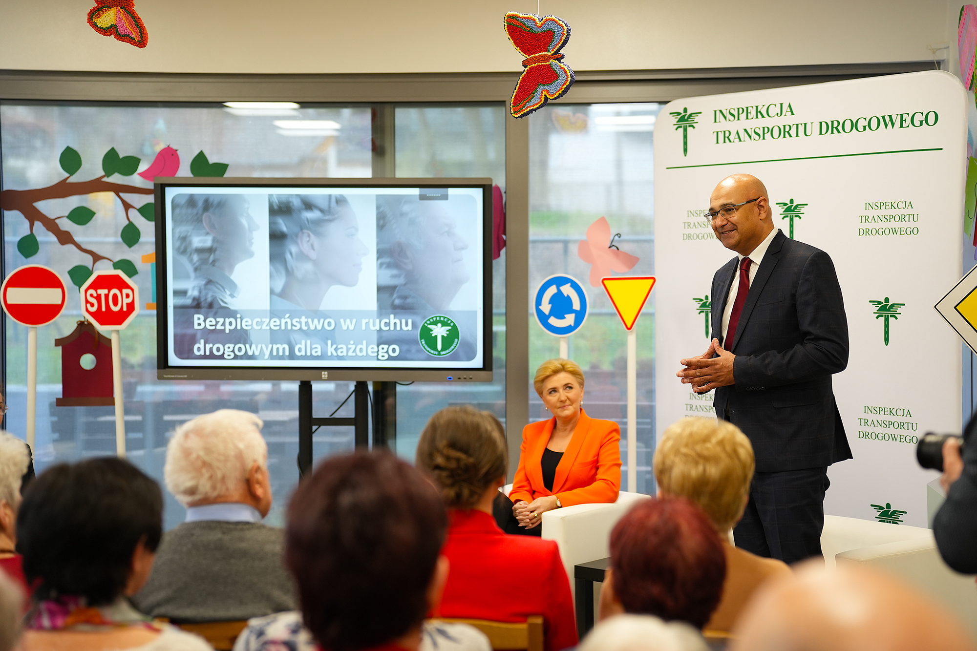 Bardzo cieszę się, że możemy się dzisiaj spotkać w Domu Seniora i porozmawiać o szeroko rozumianym bezpieczeństwie na drogach. Inspekcja Transportu Drogowego realizuje szereg projektów edukacyjnych skierowanych do różnych grup uczestników ruchu drogowego. Ten projekt – „Bezpieczeństwo w ruchu drogowym dla każdego” – jest skierowany do seniorów, coraz bardziej aktywnej grupy społecznej, która również aktywnie uczestniczy w ruchu drogowym. Dlatego chcemy Państwu przypomnieć najważniejsze zasady i przepisy oraz zwrócić uwagę na niebezpieczne zachowania