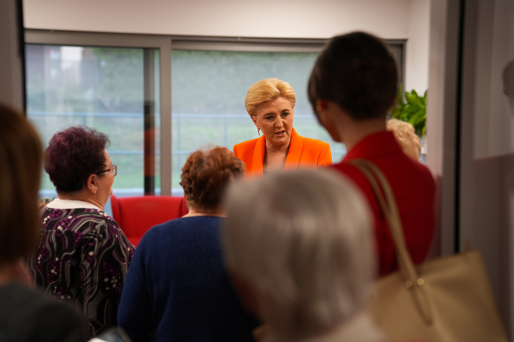 Po lekcji o bezpieczeństwie ruchu drogowym, Pierwsza Dama rozmawiała z seniorami o tym, jak na co dzień spędzają czas w Domu Seniora. Podziękowała za aktywność i zachęcała do jeszcze większej integracji.