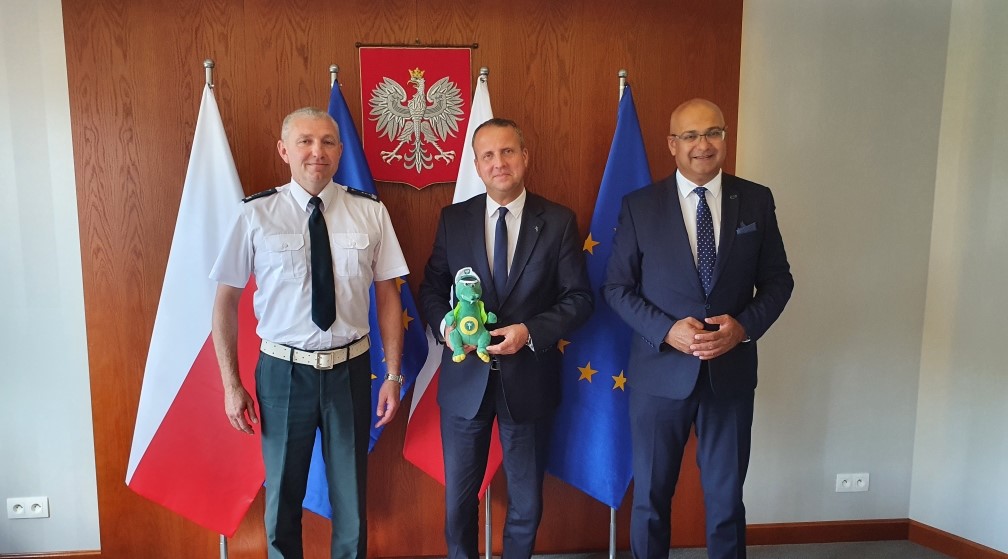 Szef ITD spotkał się też z Wojewodą Wielkopolskim Michałem Zielińskim. W trakcie spotkania rozmawiano o bieżących działaniach Inspekcji, najbliższych planach oraz dalszym rozwoju instytucji. Wojewoda podziękował Alvinowi Gajadhurowi i inspektorowi Aleksandrowi Żołędziowskiemu - dyrektorowi WITD w Poznaniu, za zaangażowanie Inspekcji w organizację działań pomocowych dla wojennych uchodźców z Ukrainy oraz cykliczne działania prowadzone na rzecz poprawy bezpieczeństwa w ruchu oraz transporcie drogowym.