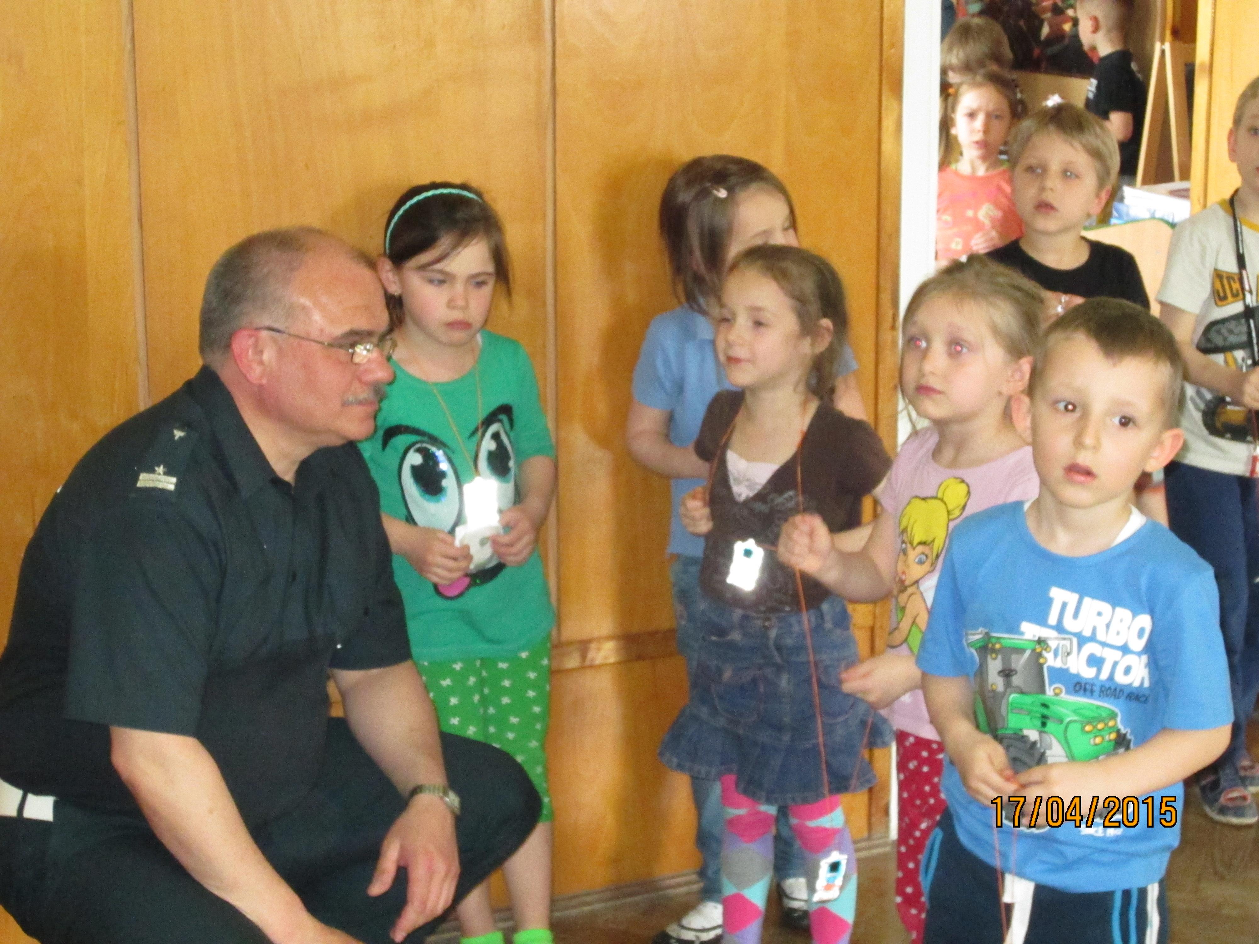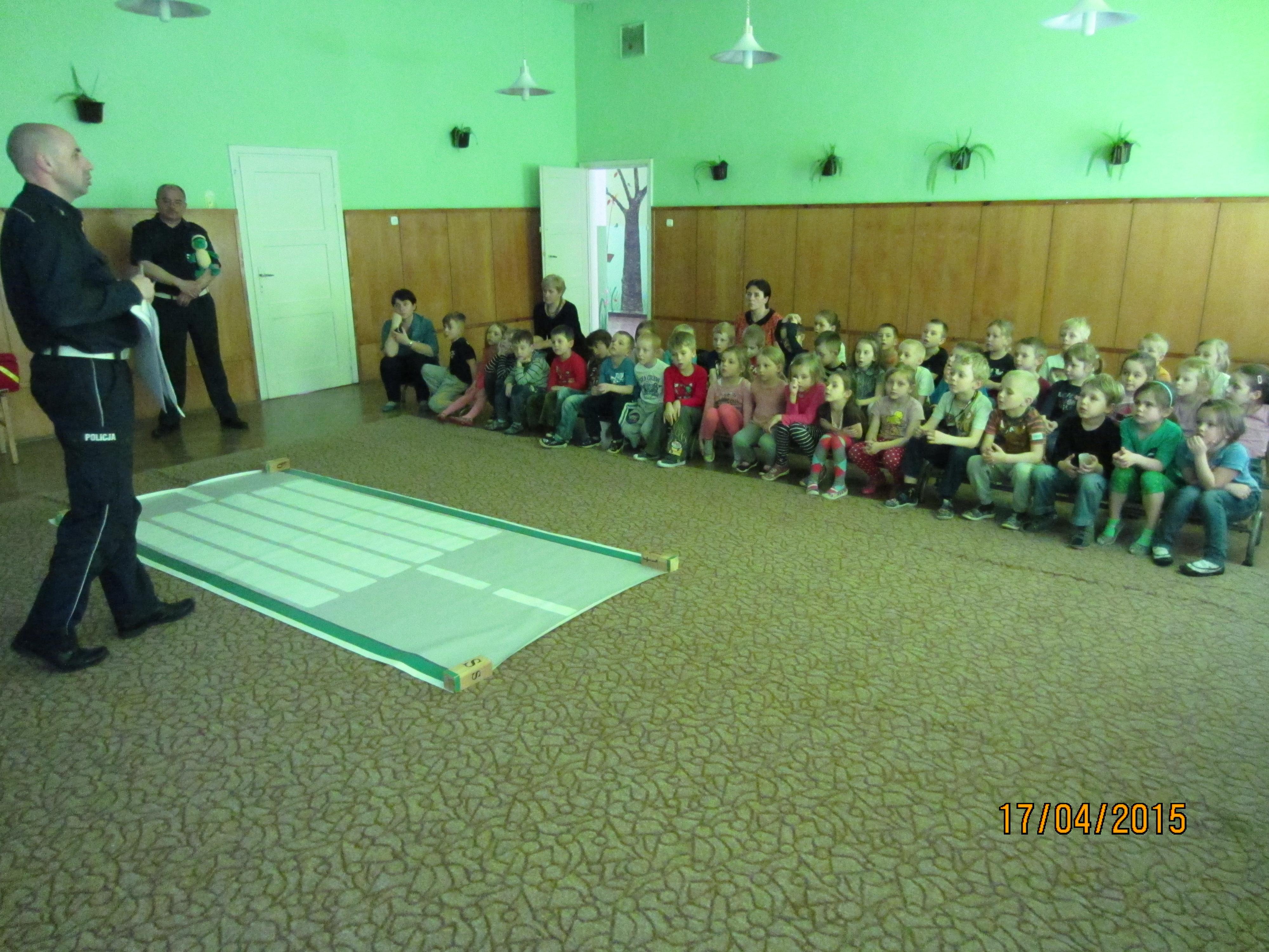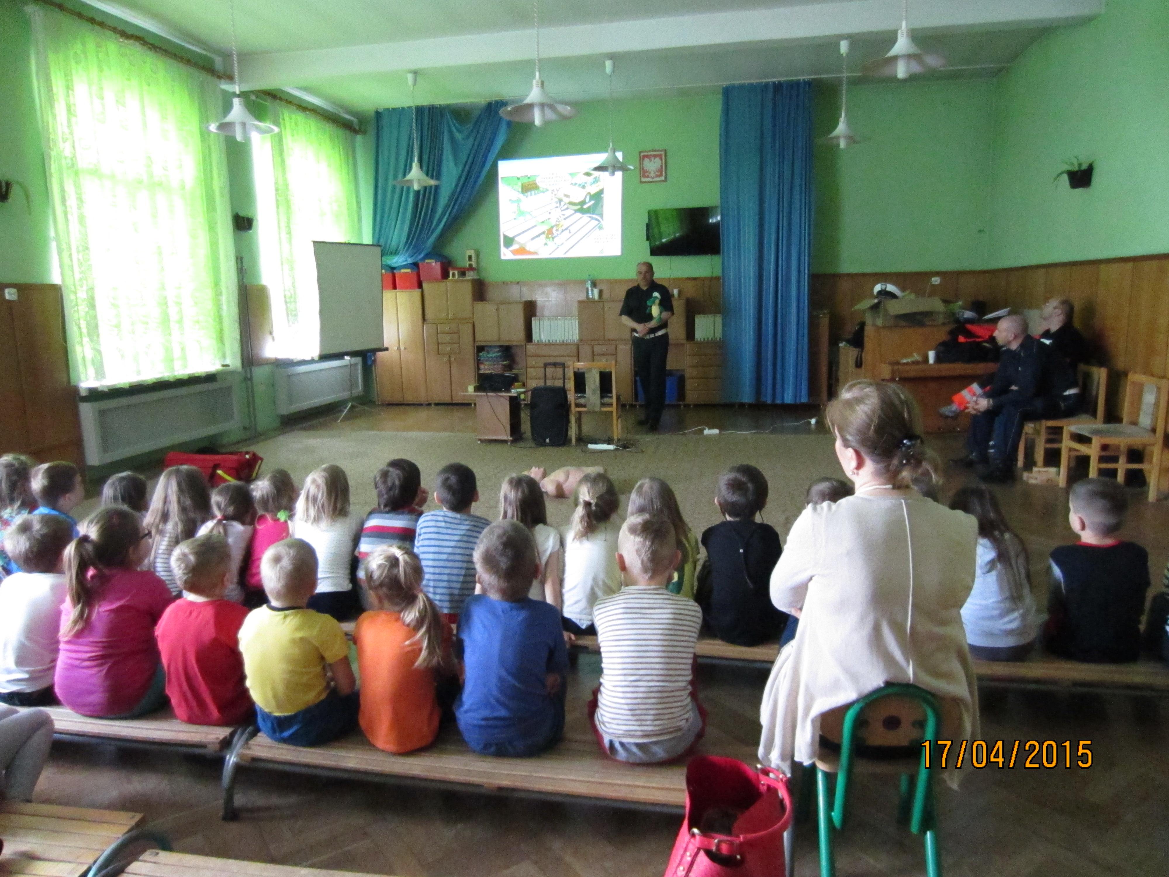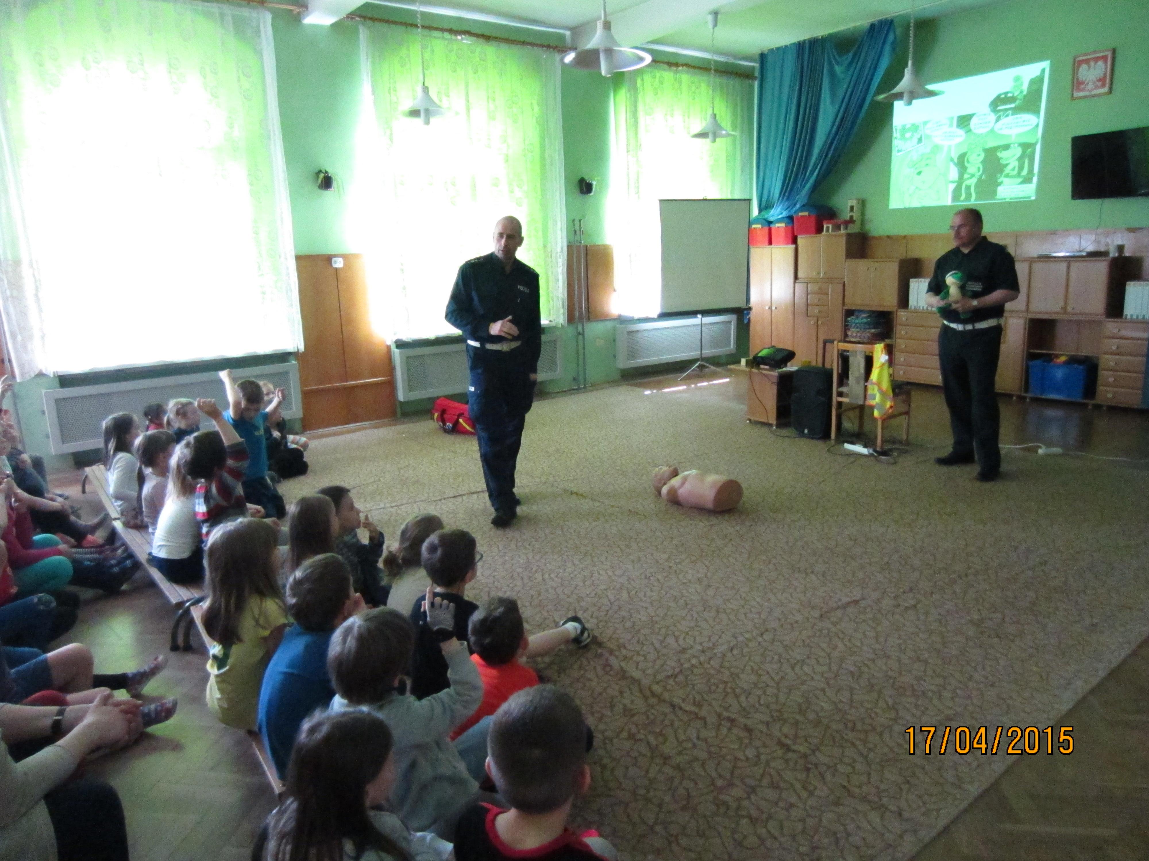 Pogadanka z dziećmi miała na celu przybliżyć pracęposzczególnych służb, które dbają o bezpieczeństwo nie tylko w ruchu drogowym, alerównież w życiu codziennym. Przedszkolaki zapoznane zostały m.in. z zasadamibezpiecznego poruszania się po drogach, przejściach dla pieszych, miejscamibezpiecznej zabawy. Ponadto wskazanezostały numery alarmowe do policji, straży pożarnej oraz pogotowia ratunkowego,a także ogólny numer ratunkowy. W pogadance zostały wykorzystane prezentacjemultimedialne, filmy animowane, makieta przejścia dla pieszych oraz fantomratowników medycznych.