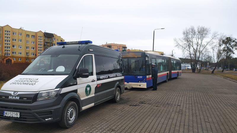 W piątek (26 lutego) funkcjonariusze kujawsko-pomorskiej Inspekcji Transportu Drogowego skontrolowali autobusy komunikacji miejskiej w Bydgoszczy, Toruniu, Grudziądzu i we Włocławku. Pojazdy kierowane były na jedną z siedmiu okręgowych stacji kontroli pojazdów, gdzie inspektorzy szczegółowo sprawdzali układy odpowiedzialne za bezpieczeństwo w ruchu drogowym, zadymienie spalin oraz szczelność układów smarowania i chłodzenia silnika. Działania prowadzone były poza godzinami porannego szczytu, a pojazdy poddawane były kontroli dopiero po zakończeniu przewozu pasażerów. Skontrolowano łącznie 74 autobusy. W 11 przypadkach inspektorzy stwierdzili usterki techniczne m.in. uszkodzenia opon, wycieki płynów eksploatacyjnych, zużyte elementy układów zawieszenia co skutkowało zatrzymaniem dowodów rejestracyjnych. Tego rodzaju kontrole prowadzone są cyklicznie w regionie, co wpływa na wzrost poziomu bezpieczeństwa oraz komfortu przewożonych pasażerów.