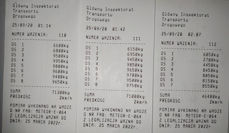 W nocy z czwartku na piątek (24-25 września) na kujawsko-pomorskich drogach funkcjonariusze ITD zatrzymali do kontroli trzy wieloosiowe zestawy ciężarowe. Każdy z nich przewoził po dwa kontenery z ładunkiem. Wszystkie "stonogi" były przeładowane. Niechlubny rekordzista ważył 71,3 tony zamiast dopuszczalnych 40 ton. Niewiele mniej - 71 ton ważył drugi zestaw, a trzeci 46,4 tony. Każda z trzech "stonóg" miała również przekroczone dopuszczalne naciski osi na drogę.