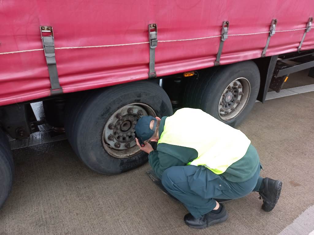 W trakcie sprawdzania stanu technicznego ciągnika siodłowego inspektorzy stwierdzili, że nie działają światła „stop”. Z kolei na desce rozdzielczej był wyświetlony komunikat, który informował kierowcę o awarii układu ABS. Usterkę zagrażającą bezpieczeństwu ruchu drogowego kontrolerzy stwierdzili też w naczepie. Pojazd miał niekompletny układ hamulcowy. Przy prawym kole na drugiej osi brakowało tarczy, zacisku i siłownika. Przewody układu pneumatycznego „zabezpieczono” plastikowymi zaciskami przed upływem powietrza.