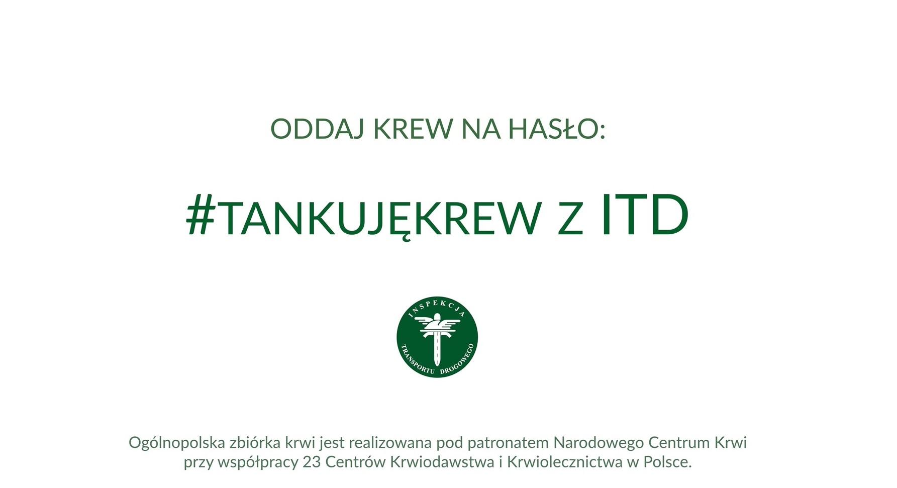 Dołącz do akcji Inspekcji Transportu Drogowego #tankujękrew z ITD i razem z Nami napełnij zbiornik Paliwa Życia!