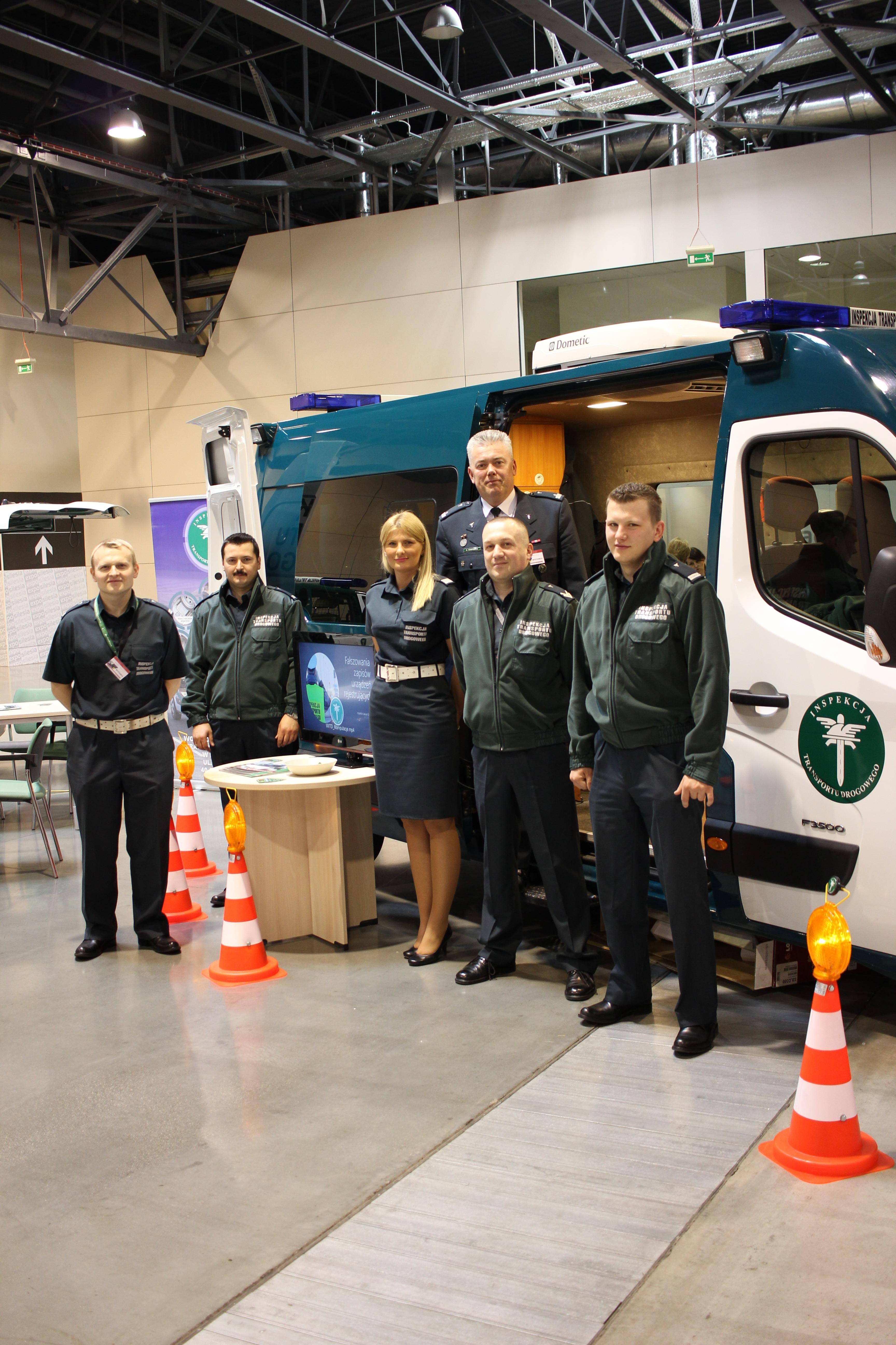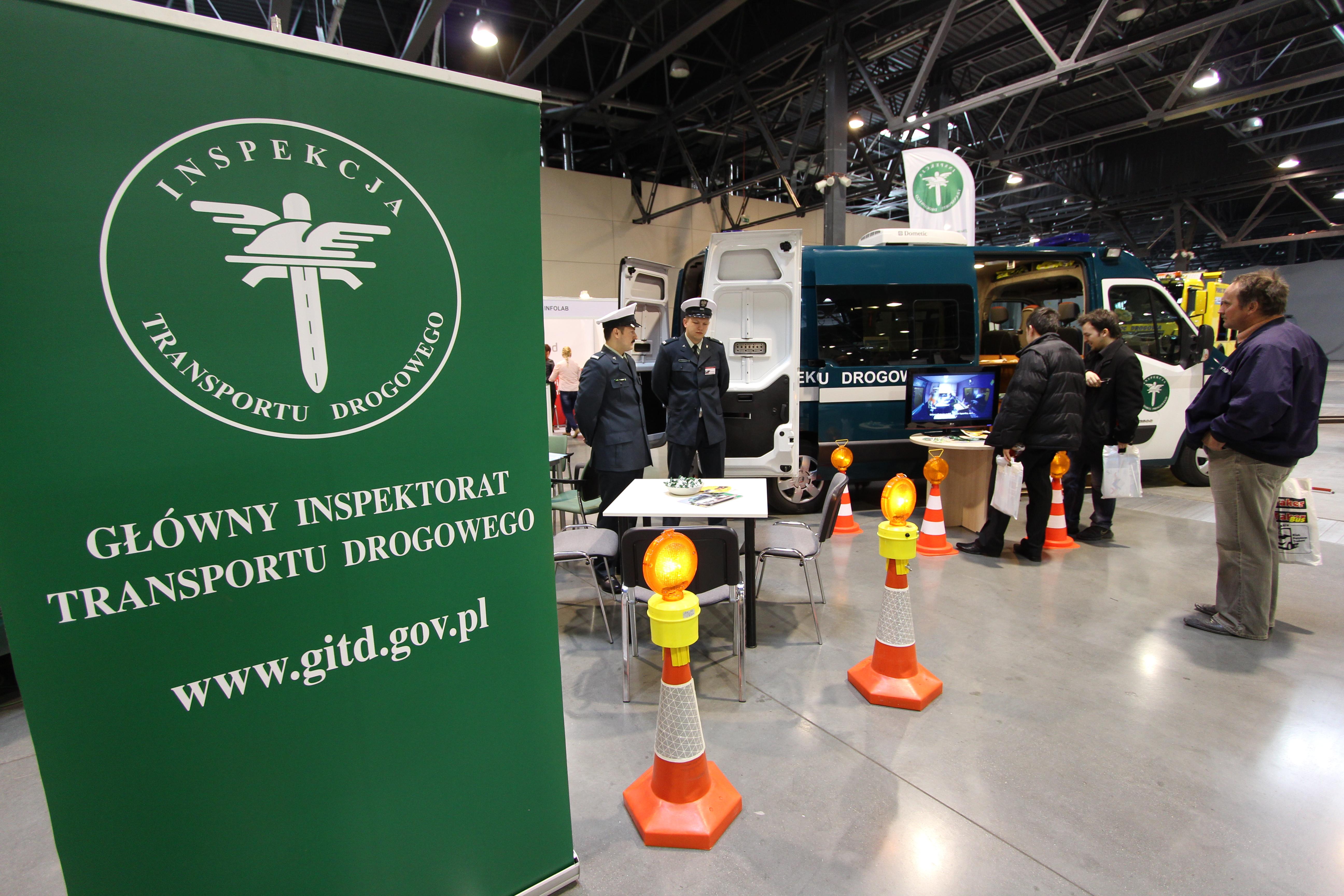 Inspektorzy WojewódzkiegoInspektoratu Transportu Drogowego w Katowicach i Delegatury GITD przygotowalibardzo bogatą ofertę dla odwiedzających targi. Zaprezentowali swoje pojazdyoraz szeroką gamę urządzeń, które na co dzień wykorzystywane są w ich pracy.Goście mogą zobaczyć specjalistyczne wagi samochodowe, dymomierze, urządzeniado pomiaru przenikalności szyb, OBD, urządzenia VDO do sprawdzaniaprawidłowości działania tachografów analogowych, czytniki i oprogramowanie doanalizy danych z tachografów cyfrowych. Na stoisku inspekcji można też byłoobejrzeć filmy: w pierwszym dniu z licznych akcji z udziałem inspektorów orazfilm instruktażowy dotyczący bezpieczeństwa w podróży, a w drugim dniumateriały szkoleniowe dotyczące czasu pracy kierowców oraz bezpieczeństwa wpodróży.
