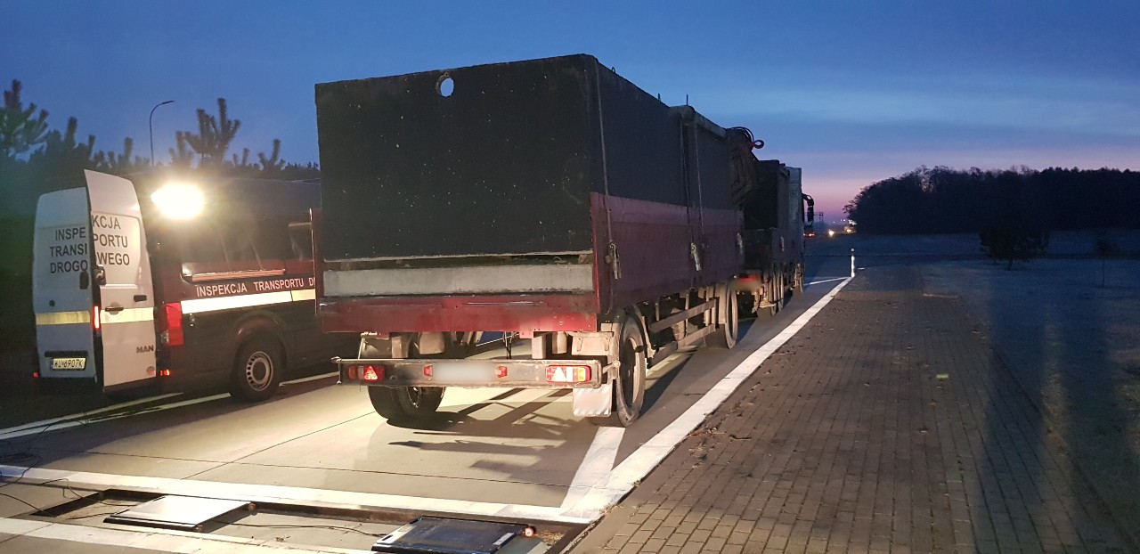 Niemal 48 ton zamiast dopuszczalnych 40 ważył zespół pojazdów z szambami betonowymi. Taki tonaż spowodował również przekroczenia dozwolonych nacisków osi. Oprócz tego z samochodu ciężarowego wyciekał olej. Z kolei przyczepa nie miała ważnego badania technicznego. Przewóz wstrzymał patrol łódzkiej Inspekcji Transportu Drogowego.