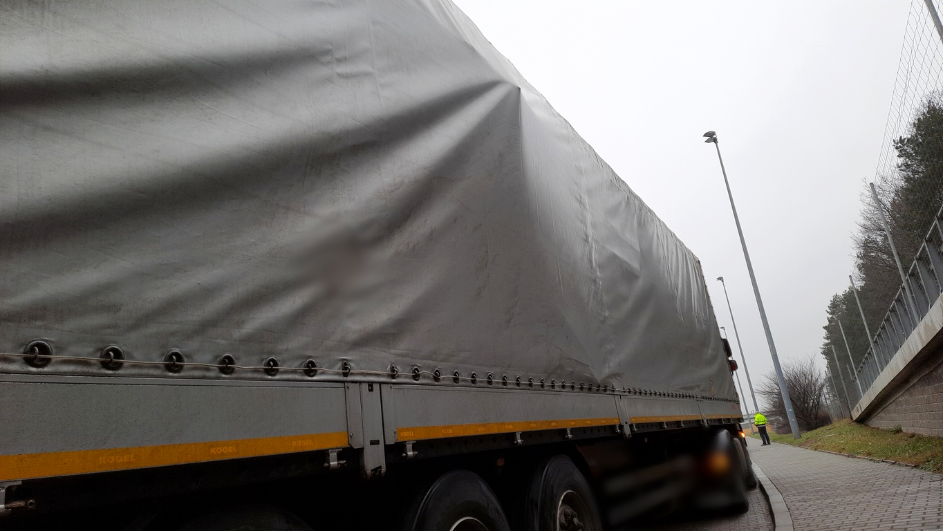 We wtorek (25 stycznia) w Żdżarach inspektorzy z oddziału ITD w Koninie zatrzymali ciągnik siodłowy z naczepą. Wykonywany był nim międzynarodowy transport drogowy rzeczy z Litwy do Belgii. Widząc wybrzuszenie w plandece naczepy, inspektorzy zatrzymali ciężarówkę do kontroli. Przewożono nią dwadzieścia ton desek. W trakcie jazdy ładunek przechylił się, naruszył deski burtowe naczepy i odkształcił plandekę zarówno po lewej, jak i prawej stronie pojazdu. Okazało się, że urządzenia służące mocowaniu przewożonego na paletach ciężaru uległy rozluźnieniu.